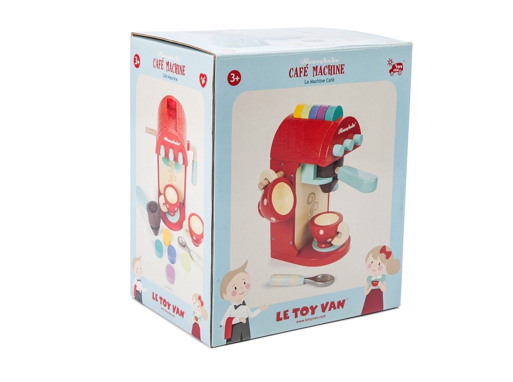 Čas na kávu! Vítejte v kavárně, tento realistický kávovar jistě bude hitem u všech malých nadšených baristů a baristek. Má mnoho detailů, které mohou děti prozkoumat – kávové kapsle, které mohou vložit do oddělitelné páky; napěňovač mléka, pěkný malovaný hrneček a lžička. Až si dohrajete, kávové kapsle můžete úhledně uložit do otvoru ve vrchní části kávovaru. Každý prvek této nádherné hračky je vyroben z udržitelného a odolného dřeva, dekorováno krásnými pestrými barvami, které jsou netoxické. Pro dlouhodobé, představivé hraní, které dbá na naši planetu. Posbírejte všechny dřevěné produkty Le Toy Van z této řady, včetně Konvice Dotty TV312 a Čajového setu Honeybake TV276. Hlavní vlastnosti: kávovar s hrnečkem, kapslemi a lžičkouoceněná hračkagenderově neutrální designbez použití plastu – vyrobeno z udržitelného FSC dřevatestováno dle nejpřísnějších standardůmalováno netoxickými barvami na bázi vodyinspiruje ke kreativní a představivé hře Ocenění hračky:Made For Mums Gold Award 2017Progressive Preschool Award Winner 2014 Honeybake kolekce: Hračky v této kolekci jsou vhodné k objevování, pomohou dětem s rozvojem představivosti, sociálních a verbálních dovedností a kognitivních funkcí. Tradiční design s moderními detaily děti jistě bude bavit. Honeybake je kolekce Le Toy Van, která vyhrála nejvíce ocenění, a to za design, kvalitu, bezpečnost a také za vzdělávací a herní hodnotu. Značka a certifikát FSC® (Forest Stewardship Council) zaručuje, že dřevo, ze kterého byl produkt vyroben, nebylo vytěženo nelegálně a pochází z lesů obhospodařovaných šetrným či přírodě blízkým způsobem, ve kterém jsou dodržovány přísné environmentální a sociální požadavky. Značka FSC® na výrobku znamená, že svým nákupem pomáháte chránit lesy a podporujete šetrné, odpovědné či přírodě blízké hospodaření, díky kterému jsou naše lesy stabilnější, zdravější, mají přirozenou druhovou skladbu a lépe odolávají negativním následkům klimatických změn.