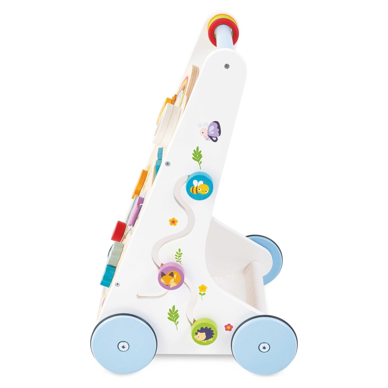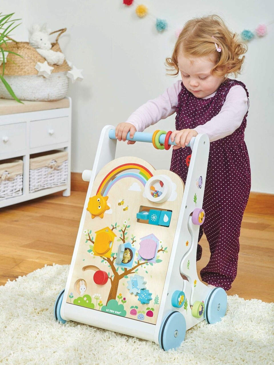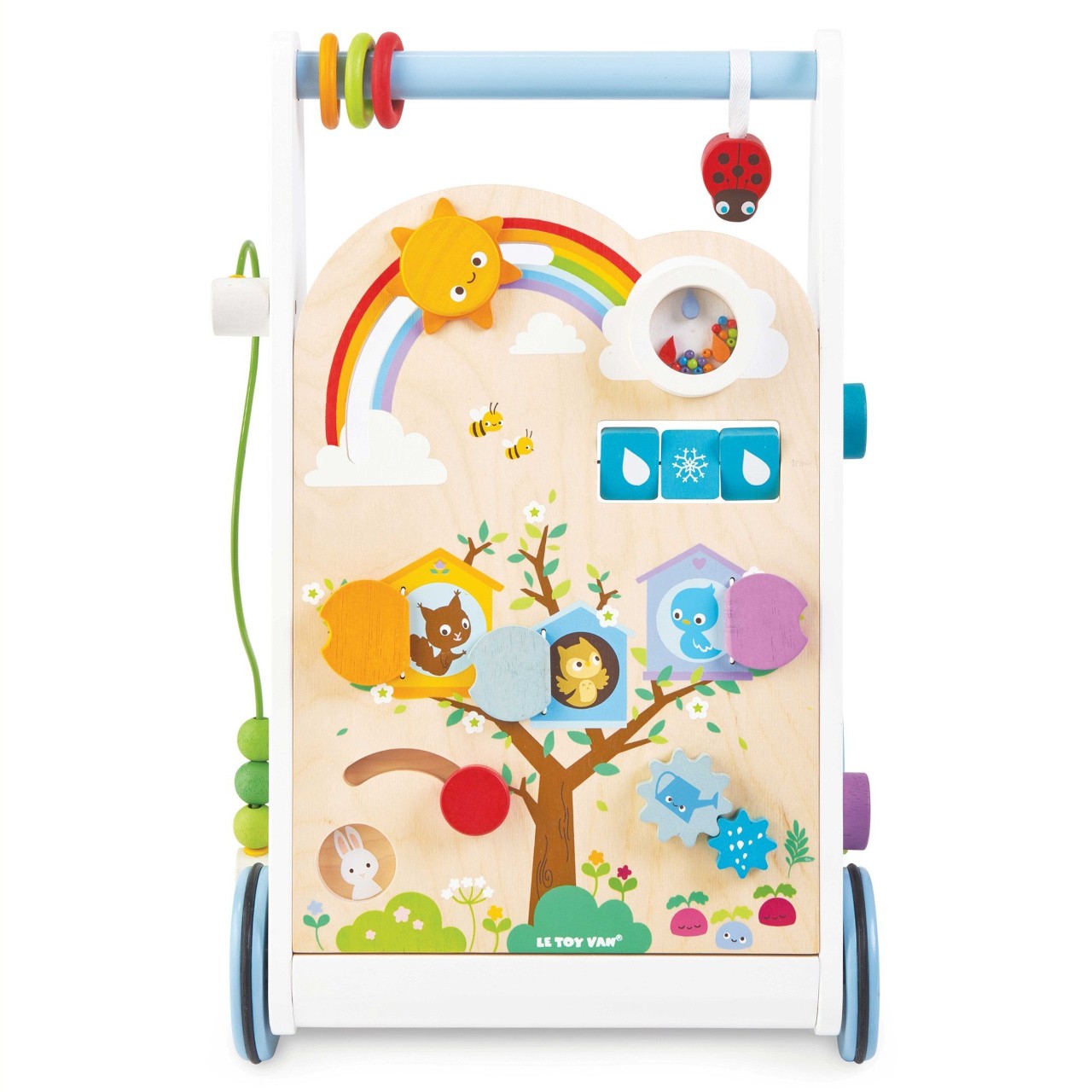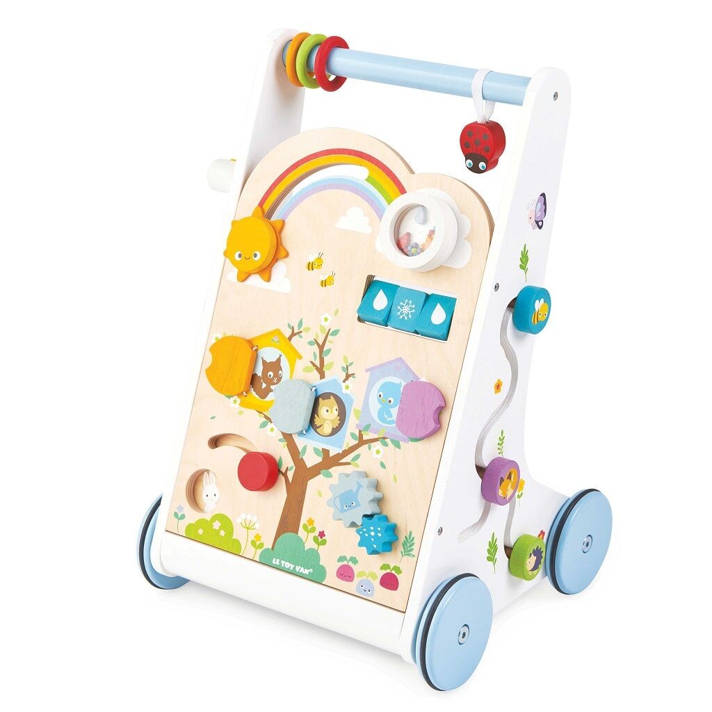 Krásné dřevěné chodítko s mnoha aktivitami. Perfektní vývojový nástroj pro rostoucí batolata. Multifunkční chodítko je dekorováno v tematice přírody, s motivy zahrady, lesa a duhy. Na předním panelu je 10 různých aktivit, strany mají každá po 1 aktivitě, děti si tak užíjí zábavu ze všech stran. Z druhé strany je zavěšena textil tak, aby tvořil odkládací prostor třeba pro přesun plyšových hraček dětí. Odolná hračka vyrobená z kaučukového dřeva, malována barvami na bázi vody. Hlavní vlastnosti: Multifunkční dřevěné chodítko s 12 různými aktivitamiDěti si budou při prvních krocích sebejistéHerní aktivity stimulují smyslyBarevný design podporuje představivostInvestujte do udržitelného hraní – inspirováno přírodou kolem nás, vyrobeno z upcyklovaného udržitelného dřeva Petilou kolekceKolekce pro nemluvňata a batolata od Le Toy Van obsahuje hlavně hmatové hračky, které mají nejmenším posloužit také jako učební prostředky. Kolekce je inspirována přírodou kolem nás a je navržena tak, aby rozvíjela smysly dětí pomocí rozdílných zvuků, textur, tvarů a hmotností. Děti tak od malička zapojí všechny své smysly.