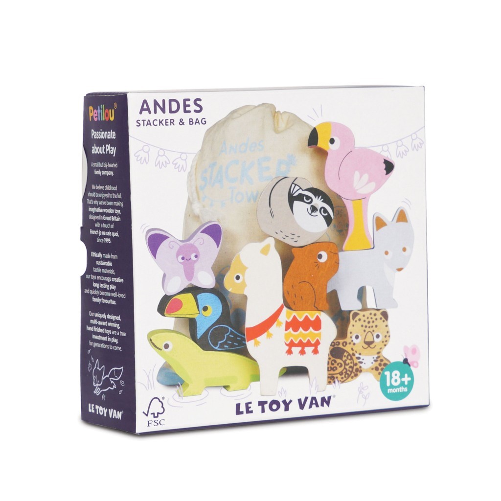Svět plný dobrodružství, to je krásná hračka s motivem zvířátek z pohoří And. Mladí milovníci přírody budou touto udržitelnou hračkou nadšení – postavte co nejvyšší věž a pak se dívejte, jak padá. Zábavné vzdělávání formou hry. Malováno veselými tóny za použití netoxických barev. Tato veselá sada se skládá z devíti dřevěných zvířátek, která jsou velká tak akorát pro dětské ruce. Najdete zde lamu, lenochoda, plameňáka, ještěrku, tukana, motýla a další. Naučí děti o divokých zvířatech, zároveň podporuje v trénování zručnosti a jemné motoriky. Perfektní hračka na cesty, je zabalená v bavlněném pytlíku. Tato hračka i její obal je 100% bez plastu. Krásná kolekce ispiruje děti k učení formou hry. Designováno zkušenými řemeslníky za použití etických praktik a udržitelných materiálů – dlouhá léta kouzelného hraní, které je také laskavé k naší planetě. Hlavní vlastnosti: textilní pytlík, 9 figurek zvířatzaoblené hranyudržitelné dřevobez obsahu plastutestováno dle nejpřísnějších standard , malováno netoxickými barvami na bázi vodypodporuje v rozvoji soustředění, motoriky a komunikační dovednostíperfektní pro představivou hru Petilou kolekceKolekce pro nemluvňata a batolata od Le Toy Van obsahuje hlavně hmatové hračky, které mají nejmenším posloužit také jako učební prostředky. Kolekce je inspirována přírodou kolem nás a je navržena tak, aby rozvíjela smysly dětí pomocí rozdílných zvuků, textur, tvarů a hmotností. Děti tak od malička zapojí všechny své smysly. V kolekci najdete například skládačky, vkládačky, chodítka... Značka a certifikát FSC® (Forest Stewardship Council) zaručuje, že dřevo, ze kterého byl produkt vyroben, nebylo vytěženo nelegálně a pochází z lesů obhospodařovaných šetrným či přírodě blízkým způsobem, ve kterém jsou dodržovány přísné environmentální a sociální požadavky. Značka FSC® na výrobku znamená, že svým nákupem pomáháte chránit lesy a podporujete šetrné, odpovědné či přírodě blízké hospodaření, díky kterému jsou naše lesy stabilnější, zdravější, mají přirozenou druhovou skladbu a lépe odolávají negativním následkům klimatických změn.