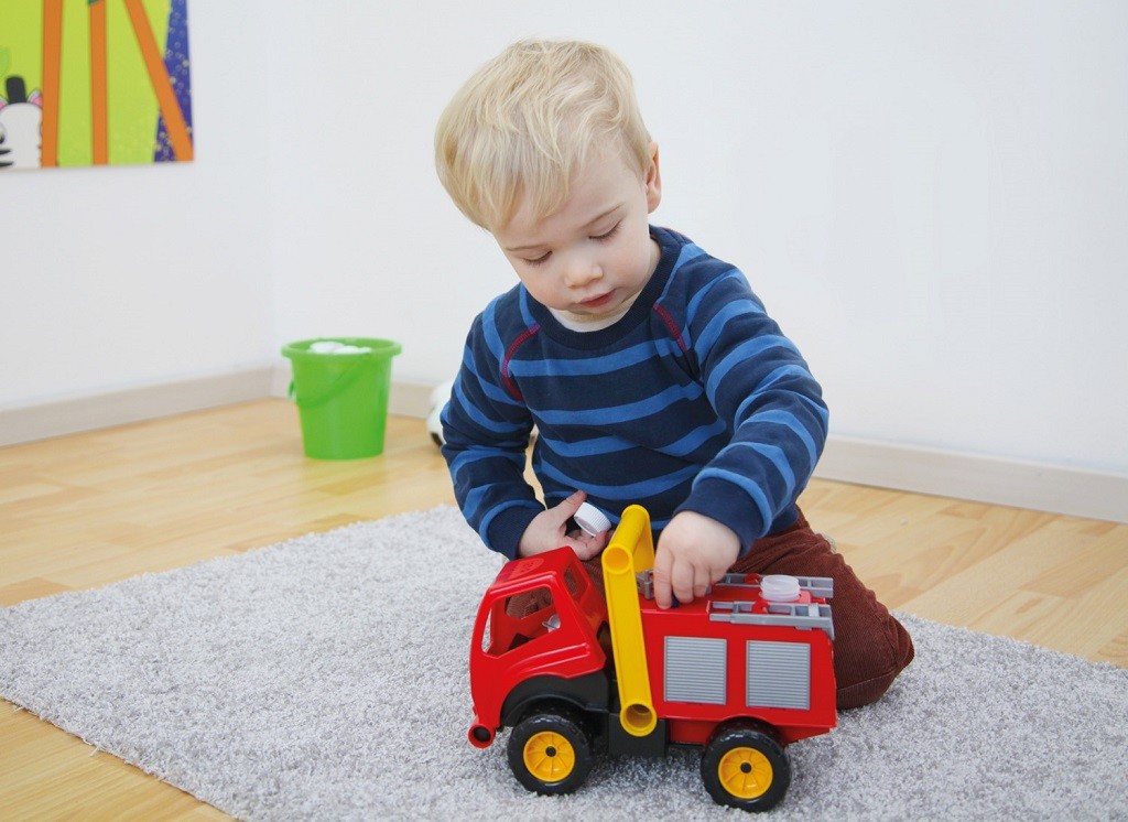 Aktivní hasič z kvalitního plastu a velmi pevnou stavbou. Plně mechanicky funkční. Osahuje nádobku na vodu s mechanickou pumpou k vodnímu dělu a odklopitelnou kabinu s panáčkem. Hlavní vlastnosti: splňuje požadavky EU na bezpečnost hračekplně mechanicky funkčnívyrobeno z kvalitního, odolného plastus aktivním panáčkem