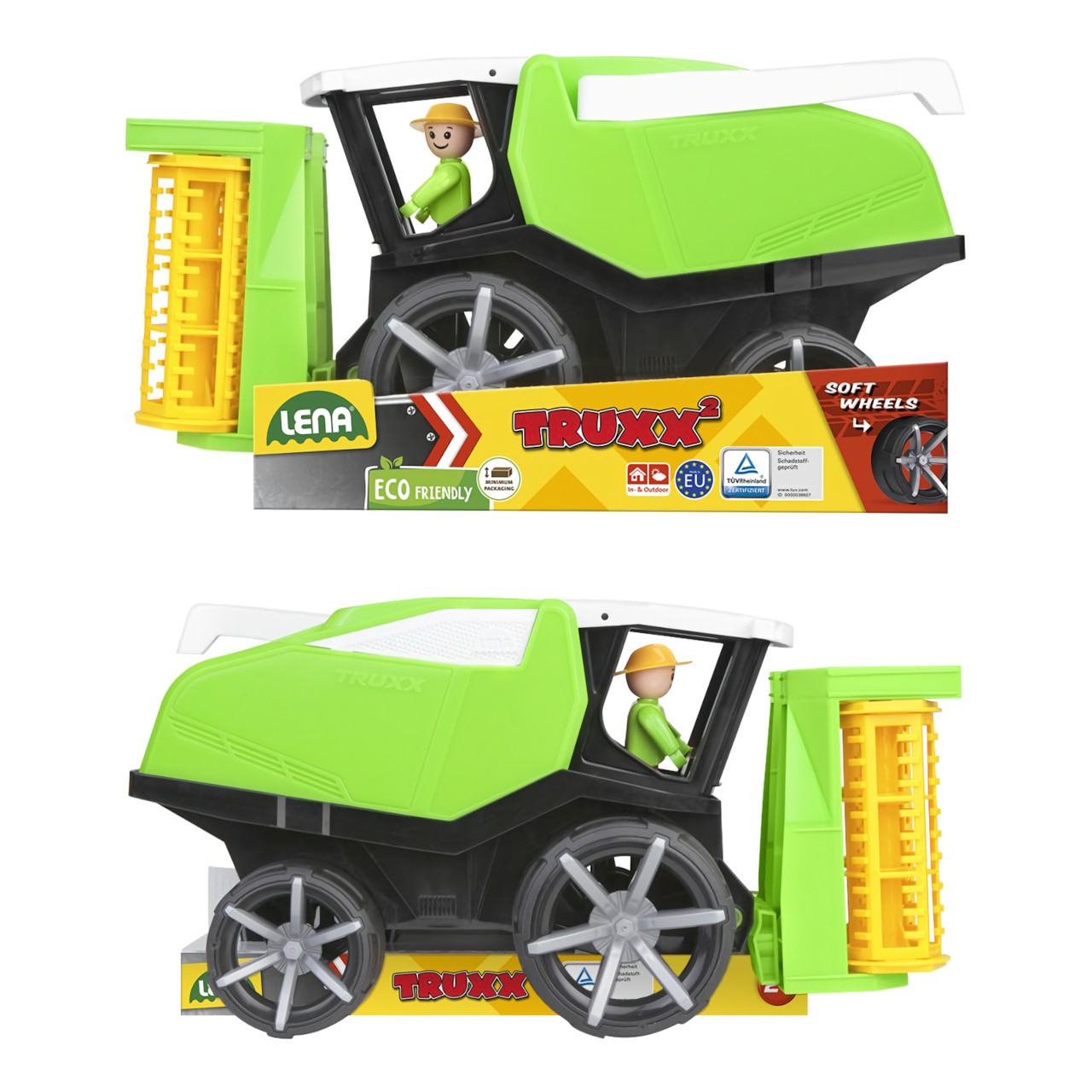 Moderní kombajn ze série TRUXX 2 je velmi pevný a odolný, vhodný i ke hraní venku, na pískovišti. Je vybaven figurkou usměvavého řidiče a díky odklopné střeše je prostor kabiny snadno přístupný hrám. Nabízí poutavé barevné zpracování a pohyblivé součásti napodobující funkce skutečného stroje. Hračka je vyrobena z nezávadného plastu, dodávána v ozdobném kartonovém podstavci. Hlavní vlastnosti:figurka řidiče, přístupná kabinapohyblivé součástipevné a odolné provedenívyrobeno v České republice