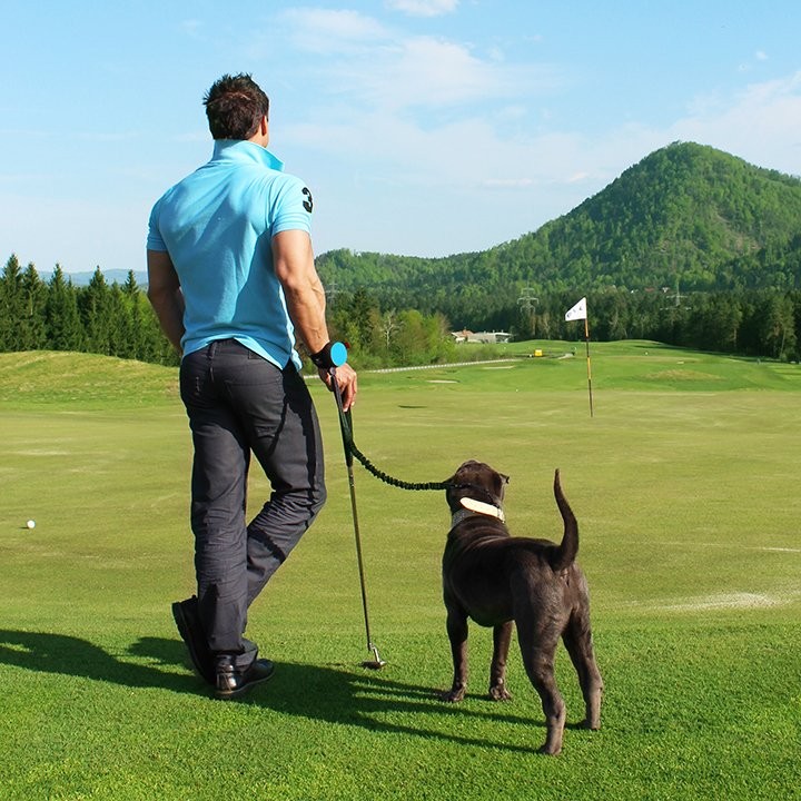 Odpružené hands-free samonavíjecí vodítko s lanem pro psy. Vyrobeno ve Slovinsku.