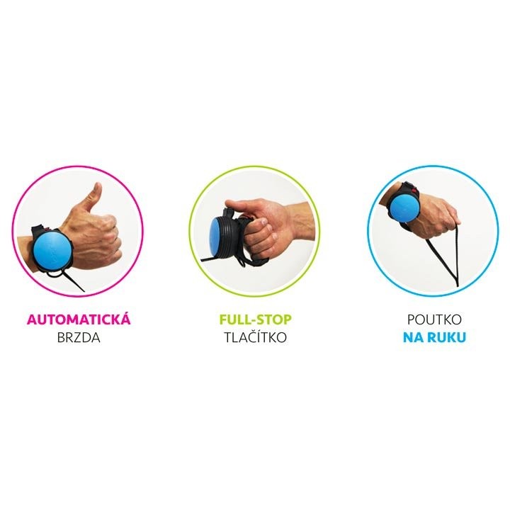 Hands-free vodítko, neoprenový pásek na ruku, barevný výměnný kryt, manuál.