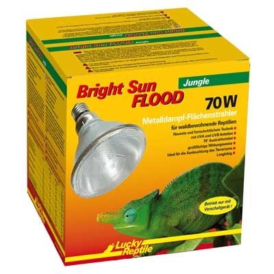 Mnoho druhů plazů, které obývají deštné pralesy potřebují přesně takovou imitaci přírodních podmínek (např. horské druhy chameleonů, asijské stromové agamy apod.) V přírodě se tyto druhy vyhýbají přímému slunečnímu světlu. Pro tyto druhy postačí Bright Sun FLOOD Jungle jako jediný zdroj světla.