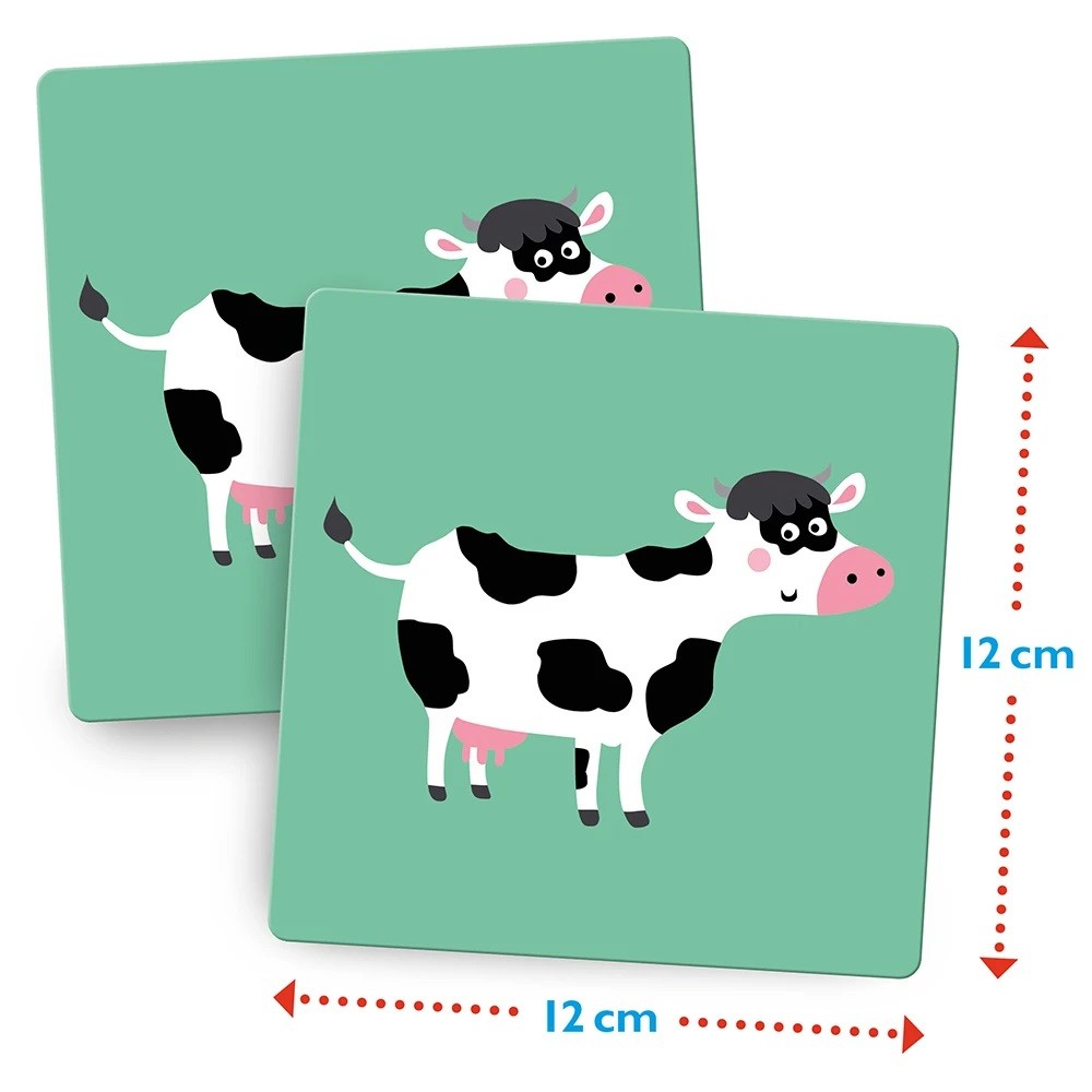 Tady leží ovečka, tam kokrhá kohout... Kdepak se skrývá kráva? Pro tuto klasickou hru je nutná nejenom dobrá paměť, ale i trpělivost. Kdo najde mezi skrytými kartami nejvíce dvojic obrázků, vyhrává!  Hlavní vlastnosti: rozvíjí logické myšlenítrénuje postřeh a paměť dětí