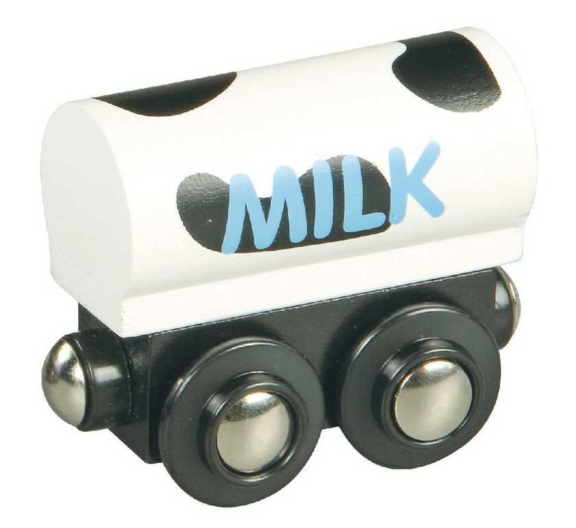 Vagón, který rozšíří sortiment dodávaného zboží. V horách, kde se pasou ty nejzdravější krávy, místní farmáři prodávají kvalitní mléko, které putuje do města. Stačí naplnit vagón mlékem a vydat se do města, kde už na něj s netrpělivostí čekají lidé, děti a mlékárny, které z něj vyrábějí nejlepší jogurty na světě. Také můžete dát komukoliv po cestě napít mléka z hor. Vláčkodráhy a doplňky Maxim lze kombinovat se všemi dalšími dřevěnými vláčkodráhami na trhu (Brio, Bino, Heros, Thomas aj.). Vhodné pro děti od 3 let, obsahuje malé části.Společnost MAXIM Enterprise, Inc. je mezinárodní výrobce specializující se na výrobu dřevěných hraček. Hračky této společnosti jsou vyrobeny z velmi tvrdého dřeva a byly navrženy speciálně pro malé děti. Vyznačují se vysokou kvalitou a bezpečností. Již déle než 25 let pracuje společnost Maxim na tom, aby mohla nabídnout hračky vysoké kvality, cenově dostupné pro každého.Manuální zručnost, sebejistota, kreativita, koordinace očí a rukou, rozpoznávání barev a čísel jsou příkladem jen několika z celé řady dovedností, které pomáhají rozvíjet výrobky společnosti Maxim. Vláčkové dráhy od společnosti Maxim mají nejvyšší kvalitu a jsou k dispozici v nejrůznějších cenových relacích. Společnost Maxim je jedničkou v prodeji dřevěných hraček na trhu v USA a Kanadě. Vláčkodráhy od společnosti Maxim jsou plně kompatibilní s výrobky Thomas, Brio, Bino a s ostatními kvalitními železničními systémy vyrobenými ze dřeva.