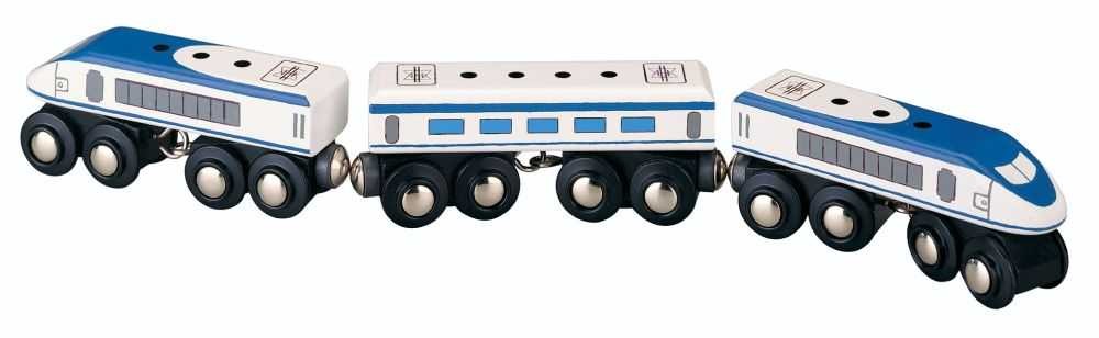 Silný motor, stabilita na kolejích, vysoká rychlost a komfort. Tím vším se tenhle supervlak může chlubit. Využitím expresního vlaku lze ušetřit mnoho času. A také ho sledovat na kolejích je velká paráda. Tento vlak s lokomotivami na obou koncích dojede na místo určení a zpět a nikdy se nepotřebuje otočit. Lokomotivy mohou tahat i různé druhy vagónů. Vláčkodráhy a doplňky Maxim lze kombinovat se všemi dalšími dřevěnými vláčkodráhami na trhu. Vhodné pro děti od 3 let, obsahuje malé části.Společnost MAXIM Enterprise, Inc. je mezinárodní výrobce specializující se na výrobu dřevěných hraček. Hračky této společnosti jsou vyrobeny z velmi tvrdého dřeva a byly navrženy speciálně pro malé děti. Vyznačují se vysokou kvalitou a bezpečností. Již déle než 25 let pracuje společnost Maxim na tom, aby mohla nabídnout hračky vysoké kvality, cenově dostupné pro každého.Manuální zručnost, sebejistota, kreativita, koordinace očí a rukou, rozpoznávání barev a čísel jsou příkladem jen několika z celé řady dovedností, které pomáhají rozvíjet výrobky společnosti Maxim. Vláčkové dráhy od společnosti Maxim mají nejvyšší kvalitu a jsou k dispozici v nejrůznějších cenových relacích. Společnost Maxim je jedničkou v prodeji dřevěných hraček na trhu v USA a Kanadě. Vláčkodráhy od společnosti Maxim jsou plně kompatibilní s výrobky Thomas, Brio, Bino a s ostatními kvalitními železničními systémy vyrobenými ze dřeva.