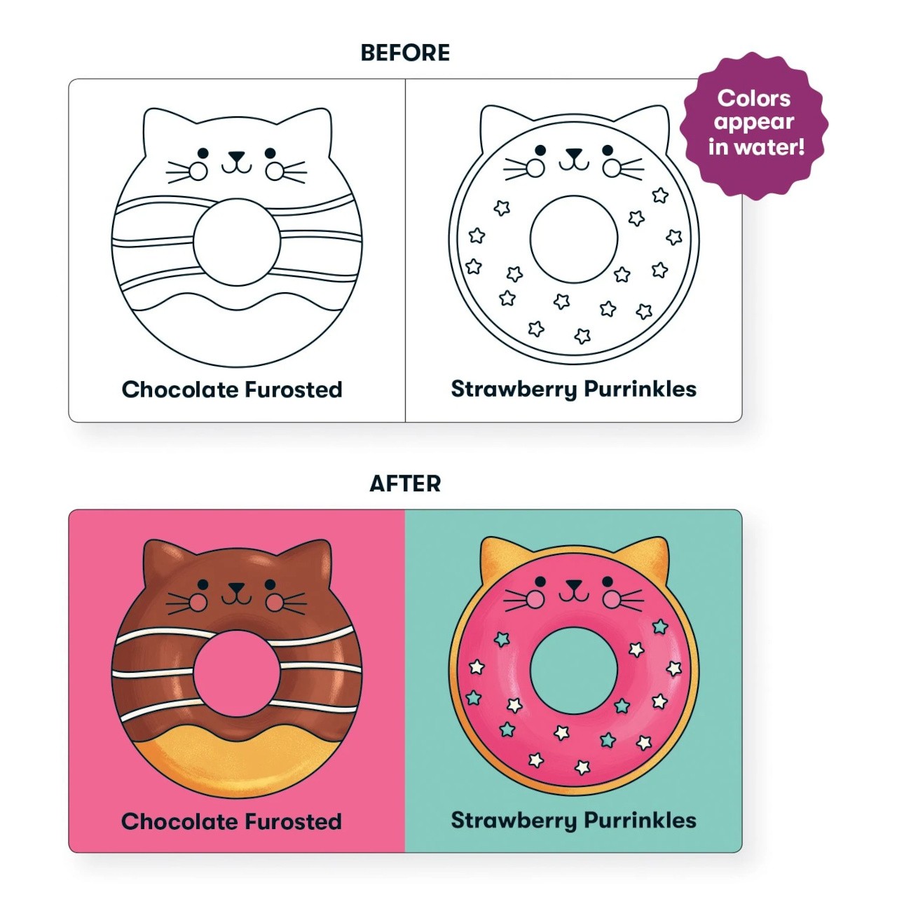 Objevte kouzlo jedinečných hraček ke koupání. Zdánlivě nenápadná obrázková knížka po namočení roztomile ožívá pestrými barvami. Snadno upoutá pozornost dětí a zabaví je při mytí, přitom pomáhá rozvíjet jejich poznávací dovednosti. Proporce hračky jsou zvlášť přizpůsobeny drobným a neobratným dětským ručičkám. Hlavní vlastnosti:6 stran s obrázkyaktivace barev ponořením do vodygrafický návrh Alyssa Nassner