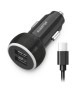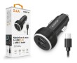 Výkonná nabíječka do auta řady „Turbo Charge“ v černém provedení, dvěma USB porty s výstupní kapacitou 2.4A a USB-C kabelem v balení.