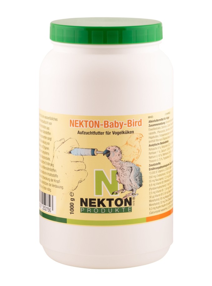 NEKTON-Baby-Bird je ve vodě rozpustné kompletní krmivo pro ruční odchov mláďat ptáků. Kombinace lehce stravitelných nutrientů s rostlinnými složkami zajišťuje zdravý vývoj oběhového systému, kloubů a orgánů. Pro posílení imunitního systému byly použity pouze vysoce kvalitní přírodní ingredience s přídavkem mikronutrientů, podobné přirozené potravě. Prebiotika a probiotika zajišťují zdravý růst mikroflóry ve voleti a střevech a podporují trávení. Není potřeba nabízet žádné jiné krmivo.