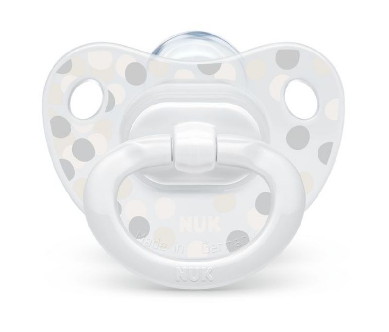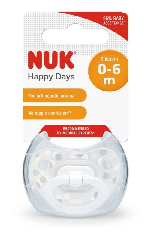 NUK Happy Days silikonový dudlík pro správný vývoj ústní dutiny dítěte. Obrázek je ilustrační, barevné odstíny odpovídají popisu. Vylepšený tvar dudlíku NUK – dudlík má stejný tvar jako matčina bradavka při kojení, dokonale padne do úst dítěte při sání Díky užšímu a ploššímu tvaru sací části se snižuje tlak na zuby a čelisti Plochá sací část a hladká spodní strana přinášejí dítěti příjemný pocit a podporují tak přirozené sání Odolná, znovupoužitelná cestovní krabička Věk 0-6 měsícůBez BPA 1 ks v balení Nový silikonový dudlík NUK Happy Days: tvar dudlíku je stejný jako matčina bradavka při kojení Každý den čeká na vaše děti mnoho vzrušujících dobrodružství, během nichž je dudlík nepostradatelným společníkem, který jim dává pocit jistoty a bezpečí. Ať už vaše dítě rozruší neznámé tváře, nové zvuky či prostředí, známé instinktivní sání dudlíku je opět dokáže rychle uklidnit. Abychom tento pocit zintenzivnili, vyvinuli specialisté ještě lepší tvar dudlíků NUK. Sací část dudlíku napodobuje tvar matčiny bradavky při kojení, takže se při sání dokáže optimálně přizpůsobit dětským ústům. Díky úzkému a plochému tvaru sací části se tlak na čelisti i zuby snižuje, a poskytuje tak jazyku dostatek prostoru pro přirozené sací pohyby. Dudlíky NUK se dokonale přizpůsobí dětským ústům a děti si na něj velmi rychle zvyknou*, což poskytuje ještě větší pohodlí jak rodičům, tak dětem samotným. Doporučováno experty: nové dudlíky NUK uklidní dítě lépe než kdy dříve Protože je pro nás celkový vývoj dítěte velmi důležitý, chceme, aby každý dudlík značky NUK podpořil přirozený a zdravý vývoj dětské čelisti. Dudlíky NUK jsou na základě nejnovějších lékařských poznatků uzpůsobeny tak, aby dítě uklidnily ještě lépe než kdy dřív, čehož jsme dosáhli díky tvaru, který je dítěti velmi dobře známý. Kojící matky potvrzují, že používání dudlíků NUK kojení nijak neovlivňuje*. Maminky tak mají více času na odpočinek. Kromě toho používání dudlíků NUK nezpůsobuje žádné ortodontické potíže, jako např. křivé zuby či deformaci čelisti. Plochý a úzký tvar sací části dudlíku minimalizuje tlak na zuby i čelist a nechává v ústech spoustu místa pro jazyk, a tedy i pro přirozené sací pohyby. Díky tomu jsou dudlíky NUK vysoce hodnocené a doporučované porodními asistentkami, pediatry i ortodontisty. Výsledky testů mluví i ve prospěch nového typu dudlíku NUK: 100 % oslovených ortodontistů potvrzuje, že nezpůsobuje žádné potíže**, 95 % dětí tento dudlík rychle přijme*, 90 % maminek jeho používání doporučuje* a 92 % kojících matek potvrzuje, že používání dudlíku kojení nijak neovlivňuje. * Nezávislý průzkum trhu, 307 oslovených matek, Německo 2017 **Nezávislý průzkum trhu, osloveno 50 ortodontistů, 50 pediatrů a 50 porodních asistentek, Německo 2017 Silikonový dudlík NUK Happy Days - pro veselý a barevný každodenní život dítěte Se svými jasnými a veselými motivy, přinášejí dudlíky NUK Happy Days každý den spoustu barev a radosti vašemu malému pokladu. Praktický kroužek na dudlíku je vyroben z vysoce kvalitního polypropylenu a je vhodný pro uchopení i pro ty nejmenší ručičky. Průhledný silikon se snadno čistí, je chuťově neutrální, bez zápachu a je odolný vůči vysokým teplotám. Neobsahuje škodlivé látky, je odolný při vyváření a má hladký povrch. Všechny dudlíky NUK mají NUK Air System, který umožňuje únik vzduchu ze savičky, aby jej dítě nepolykalo. Díky tomuto systému zůstává dudlík měkký a snadno se přizpůsobí dětským ústům. Multifunkční balení Dudlík NUK Happy Days má navíc svou vlastní praktickou krabičku. Ta se postará o hygienické čištění dudlíku v mikrovlnné troubě, cestování i skladování v čistotě a bezpečí. Hlavní vlastnosti: vylepšený originální tvar dudlíkuextra velké ventilační otvory pro maximální cirkulaci vzduchu, pokožka miminka tak může dýchatperfektní pro dětskou citlivou pokožkutenčí a užší savička redukuje tlak na čelist a zoubkyodolná, znovupoužitelná cestovní krabičkaBPA free