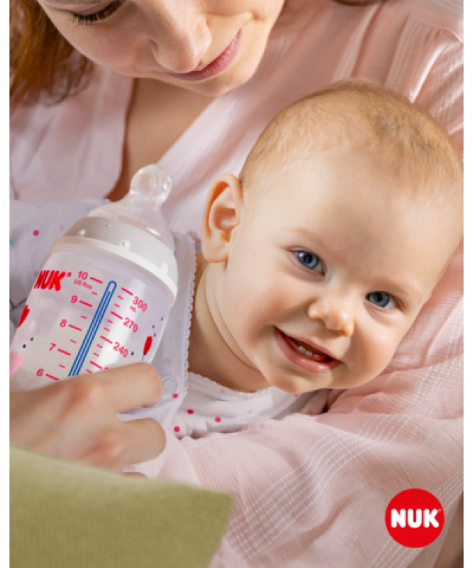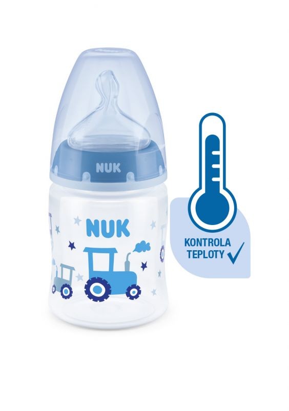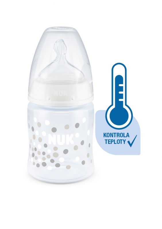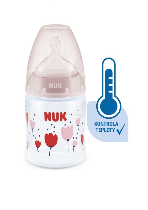 Kontrola teploty pomáhá rodičům dosáhnout optimální teploty a zajistit tak bezpečné krmení jejich dítěte. Klidné a bezpečné krmení díky kontrole teploty. Když má dítě hlad, příkrm v láhvi by neměl být příliš horký ani příliš studený. Proto maminky a tatínkové před každým jídlem kontrolují teplotu příkrmu. Poznat, kdy má příkrm tu správnou teplotu, není snadné. Proto byly vyvinuty kojenecké láhve NUK First Choice+ s funkcí kontroly teploty. Tato funkce nebyla v této podobě dosud představena. Kojenecké láhve NUK First Choice+ jsou nyní vybaveny novou kontrolkou teploty a pomáhají tak zabránit tomu, aby vaše dítě pilo příliš horký příkrm. Kontrolka vypadá jako teploměr, je umístěna mezi ryskami a teplota obsahu láhve změní její barvu. Tato funkce pomůže rodičům dosáhnout optimální teploty při krmení jejich dítěte. Pokud je příkrm příliš horký, modrá kontrolka se změní na bílou. V ideálním případě by měl příkrm mít tělesnou teplotu (37 °C), což odpovídá modrému zabarvení displeje. Pozor: kontrola teploty je určena pro dodatečnou kontrolu. Před krmením je teplotu nutné zkontrolovat i ručně. Chcete-li zkontrolovat teplotu, doporučujeme nakapat několik kapek obsahu láhve na vnitřní zápěstí. Nejpřirozenější savička pro vaše dítě.Po mnoho let jsou láhve First Choice první volbou pro krmení z láhve po vzoru kojení. S láhvemi First Choice+ jsme se ještě více přiblížili přírodě – umožňují zdravý vývoj čelisti a dítě má pocit, že pije z matčina prsu. Přirozeně a správně tvarované pro čelist.Jedinečný tvar saviček NUK je modelován podle matčiny bradavky při kojení. Savička ponechává dostatek prostoru pro přirozené sací pohyby jazyka a čelisti vašeho dítěte. Měkké jako matčino prso.Silikonová savička je díky nové měkké zóně lépe tvarována pro patro pusinky vašeho dítěte a zajišťuje tak přirozený pocit při pití. Zabraňuje kolice**Vylepšený systém proti polykání vzduchu Anti-Kolik Air System zajišťuje plynulý tok tekuté stravy bez polykání vzduchu. Klinicky testováno*Díky mimořádně přirozenému tvaru savičky je děti velmi dobře snášejí. To znamená, že jsou zvlášť vhodné pro děti, které jsou současně kojeny a přikrmovány z láhve. Kojenecká láhev. praktický displej NUK kontroly teploty, který změní teplotu z modré (studené) na bílou (příliš horké)bez škodlivých látek a zápachu – neobsahuje BPAsnadné naplnění a vymývání – extra široké hrdlo láhvebezpečné uchopení a stabilita – díky jemně vytvarované láhvi a široké základněneomezený počet kombinací – kompatibilní se všemi výrobky NUK First Choice *Vědecká studie: Moral a kol. BMC pediatři 2010, 10:6. Podrobnější informace naleznete na stránkách http://nuk.com/research. **Nezávislý průzkum trhu s 205 pediatry, Německo 2018. 99 % matek potvrdilo, že láhev NUK First Choice+ Control nezpůsobuje koliku. Hlavní vlastnosti: teplota obsahu láhve změní její barvu: pokud je pokrm příliš horký, modrá kontrolka se změní na bílouideální pro dětskou čelist, savička z obzvlášť měkkého silikonu, 0-6 měsíců M (středně velký otvor = pro dětskou výživu)klinicky testováno*: pro optimální kombinaci krmení z prsu a láhveatraktivní design