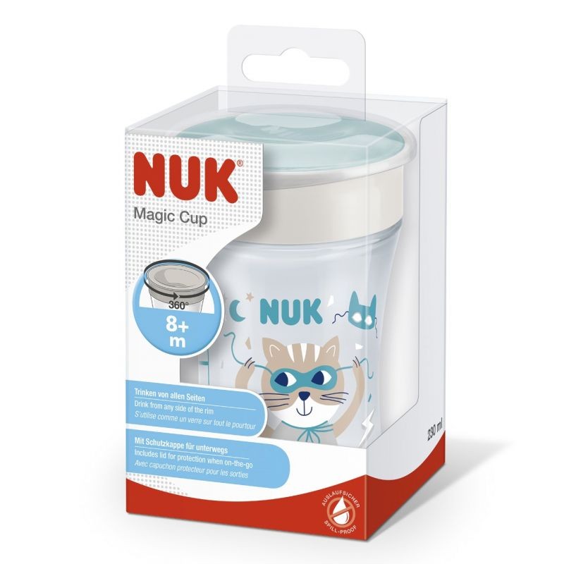 Naučit se samostatně pít je jedním z nejdůležitějších kroků ve vývoji miminka a je opravdovou výzvou pro trpělivost a dovednost. Mnozí rodiče by si jistě přáli umět trochu kouzlit, pokud jde o učení svých dětí pít z hrníčku bez jejich pomoci. To, co starší děti dnes považují za samozřejmost, se malí musí ještě učit. Magic Cup je vhodný pro děti od 8 měsíců a právě jeho design může být velkým pomocníkem v této důležité fázi vývoje dítěte. Proto jsme vyvinuli evoluční hrnečky NUK: tři nové hrnečky na pití, které lze kombinovat s různým příslušenstvím, aby tak mohly růst společně s dítětem. Každý nástavec je navržen tak, aby vyhovoval jednotlivým učícím fázím a bylo snadné ho se zvyšujícími se schopnostmi miminka vyměnit. Použití je velmi individuální a přizpůsobí se rychlosti učení našich nejmenších. Všechny tři nástavce jsou zcela bezpečné proti vytečení a jsou součástí praktické sady na učení pití evolučních hrnečků NUK. Objevte hrneček, který roste společně s Vámi! Naučit se samostatně pít je jedním z nejdůležitějších kroků ve vývoji miminka a je opravdovou výzvou pro trpělivost a dovednost.  Magic Cup umožňuje dětem pít jako dospělí - stejně jako z normálního hrnečku a ze všech stran. „Kouzelným“ rozdílem je to, že hrneček je bezpečný proti vytečení. Silikonový disk utěsňuje nástavec zevnitř. Pití je dětská hra, stačí jednoduše sát hranu hrnečku a tenký okraj se otevře - učení se pít je kouzlo!  Magic Cup NUK je vyroben z vysoce kvalitních a silných materiálů, neobsahuje BPA a je vyzdoben roztomilými motivy. Skládá se z několika jednotlivých částí, které lze jednoduše rozložit a vyčistit: jednoduše je vložte do myčky nádobí. A aby byl kouzelný hrneček čistý i na cestách a nepoškodil se, obsahuje další ochranné víčko.  Tento hrneček na pití NUK je kompatibilní se všemi produkty z řady evolučních hrnečků NUK.  Hlavní vlastnosti: pojme 230 ml tekutiny, vhodné pro děti od 8 měsíců360° pitný okraj, díky kterému lze pít ze všech strans ochranným víčkem na cestováníbezpečné proti vytečení díky těsnicímu silikonovému disku atraktivní design  Ocenění produktu:volba poroty magazínu MAMAvolba za rok 2020