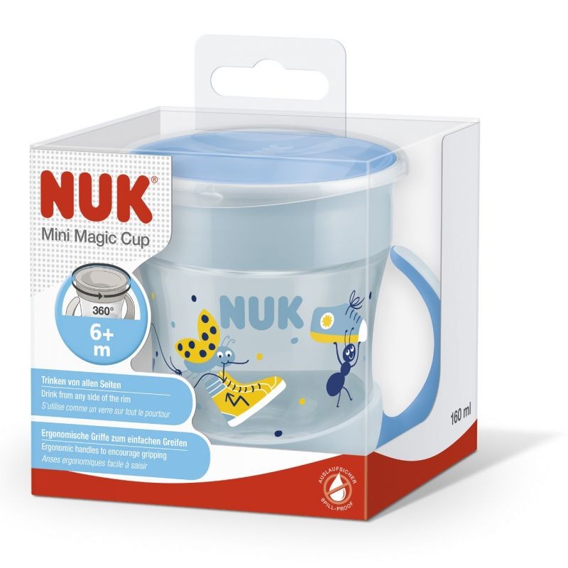 Naučit pít Vaše dítě samostatně je ve vašich rukách. Hrneček NUK Mini Magic Cup umožňuje i těm nejmenším pít jako velké děti. 360° pitný okraj podporuje dítě ve snaze učit se pít podél celého okraje - skoro jako u běžného hrnečku. Jediný „kouzelný rozdíl“ je ten, že nápoj z hrnečku nevyteče díky silikonovému disku, který utěsňuje víčko zevnitř. Pití je dětská hra - stačí jednoduše sát hranu hrnečku. Hrneček je navíc mimořádně malý a snadno se drží. Díky ergonomicky tvarovaným držátkům ho snadno mohou držet i malé prstíky a ručky. Abyste hrneček Mini Magic Cup udrželi čistý a v bezpečí, ať už jste kdekoliv, součástí je ochranné víčko.  Hrneček NUK Mini Magic Cup - pití jako u velkých dětí, přizpůsobené pro ty nejmenší.Hrneček je vyroben z vysoce kvalitního a odolného materiálu, neobsahuje BPA a je vyzdoben roztomilými motivy. Skládá se z několika jednotlivých dílů, které lze během chvilky rozložit a složit a jednoduše se čistí.  Hrnečky NUK Evolution Cups - správný hrneček pro každé vývojové stádium.Naučit se samostatně pít je jedním z nejdůležitějších kroků ve vývoji miminka a je opravdovou výzvou, pokud jde o trpělivost a dovednost. Právě proto jsme vyvinuli hrnečky Evolution Cups - hrnečky ve dvou velikostech a s různými nástavci na pití, které „rostou“ společně s dítětem. Díky široké škále možných kombinací nabízí tato řada hrnečků ten pravý hrneček pro každou učící fázi.  Každý nástavec je navržen tak, aby vyhovoval jednotlivým učícím fázím a bylo snadné ho se zvyšujícími se schopnostmi miminka vyměnit. Všechny tři nástavce jsou také zcela bezpečné proti vytečení. Díky tomu mají děti vždy takovou pomoc, jakou právě potřebují, a zároveň je učení se pít baví.  Hlavní vlastnosti: 360° pitný okraj, díky kterému lze pít ze všech strans ergonomicky tvarovanými držátky pro snadné drženípojme 160 ml tekutinyodolné proti vytečení s ochranným víčkem na cestováníneobsahuje BPA