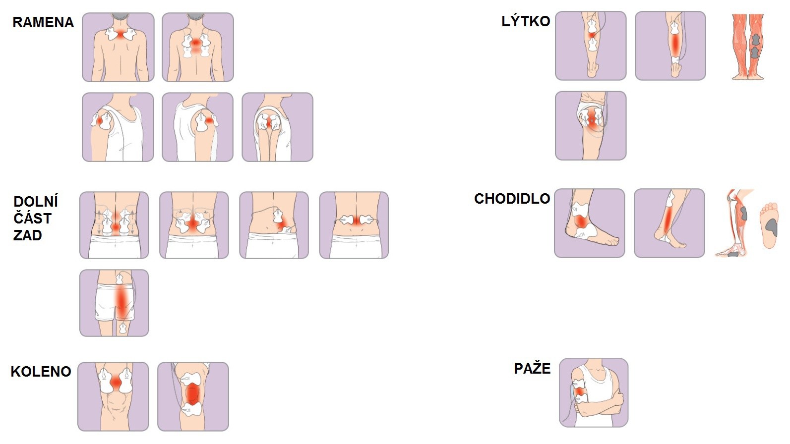- 6 přednastavených léčebných zón (rameno, kloub, paže, dolní část zad, noha a chodidlo)