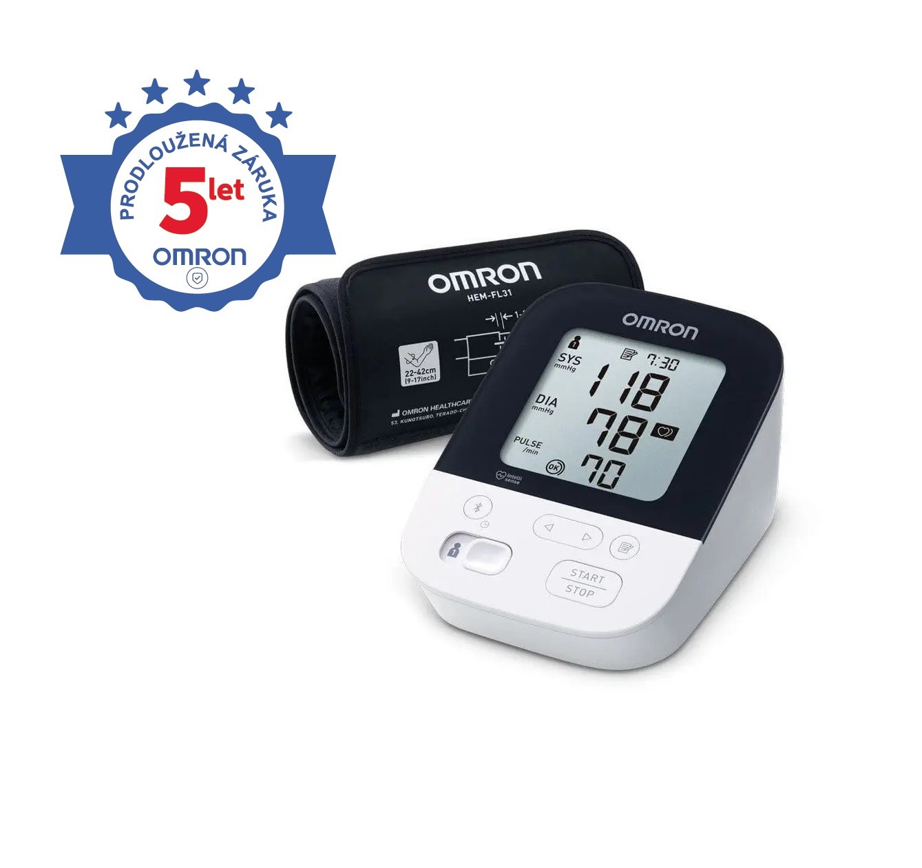 •Intelli manžeta pro vysoce přesné výsledky, pro normální i silnou paži (22-42 cm)