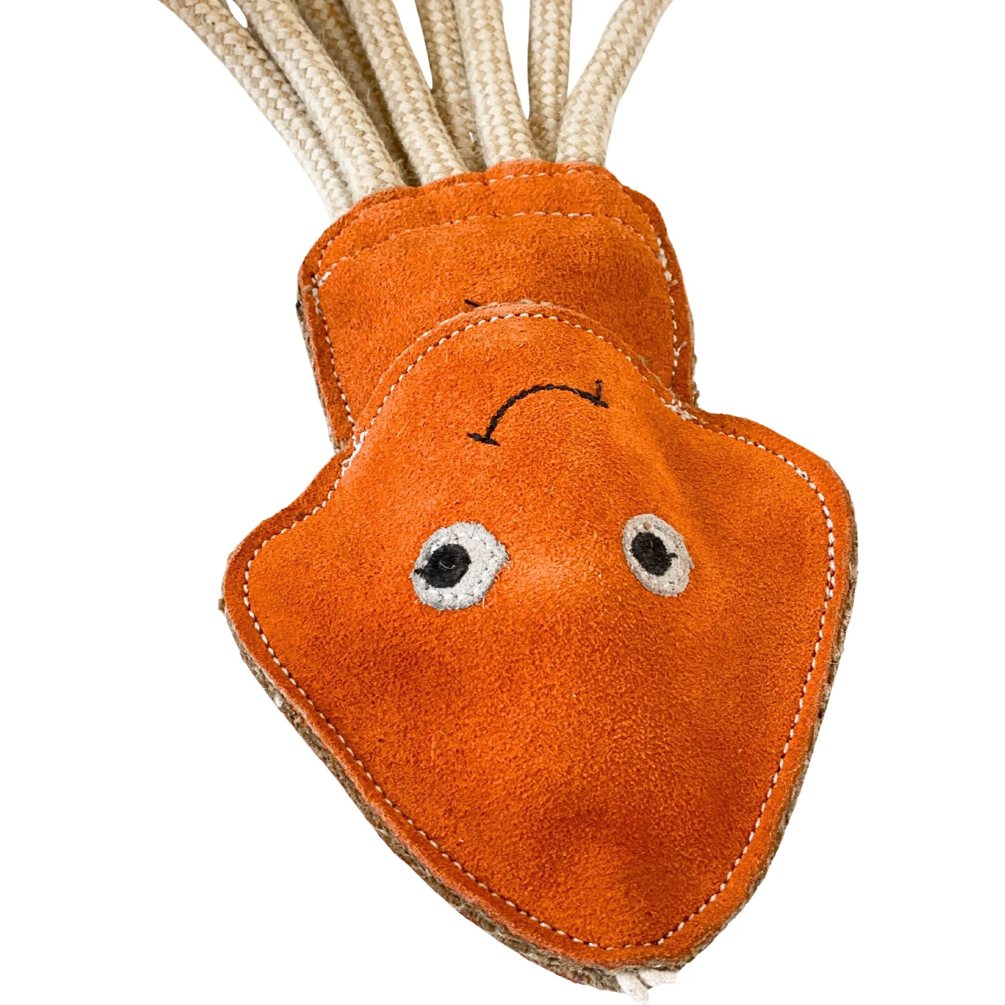 Ekologická hračka pro psy z pravé kůže, juty a bavlněných lan. Celý popis