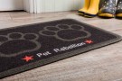 Neotřelý design těchto koberečků ukáže všem návštěvníkům, že se v domácnosti nachází rodinný mazlíček, o kterého se příkladně staráte, a přitom myslíte i na ochranu Vaší podlahy. Vhodný je samozřejmě i pro kočky :)