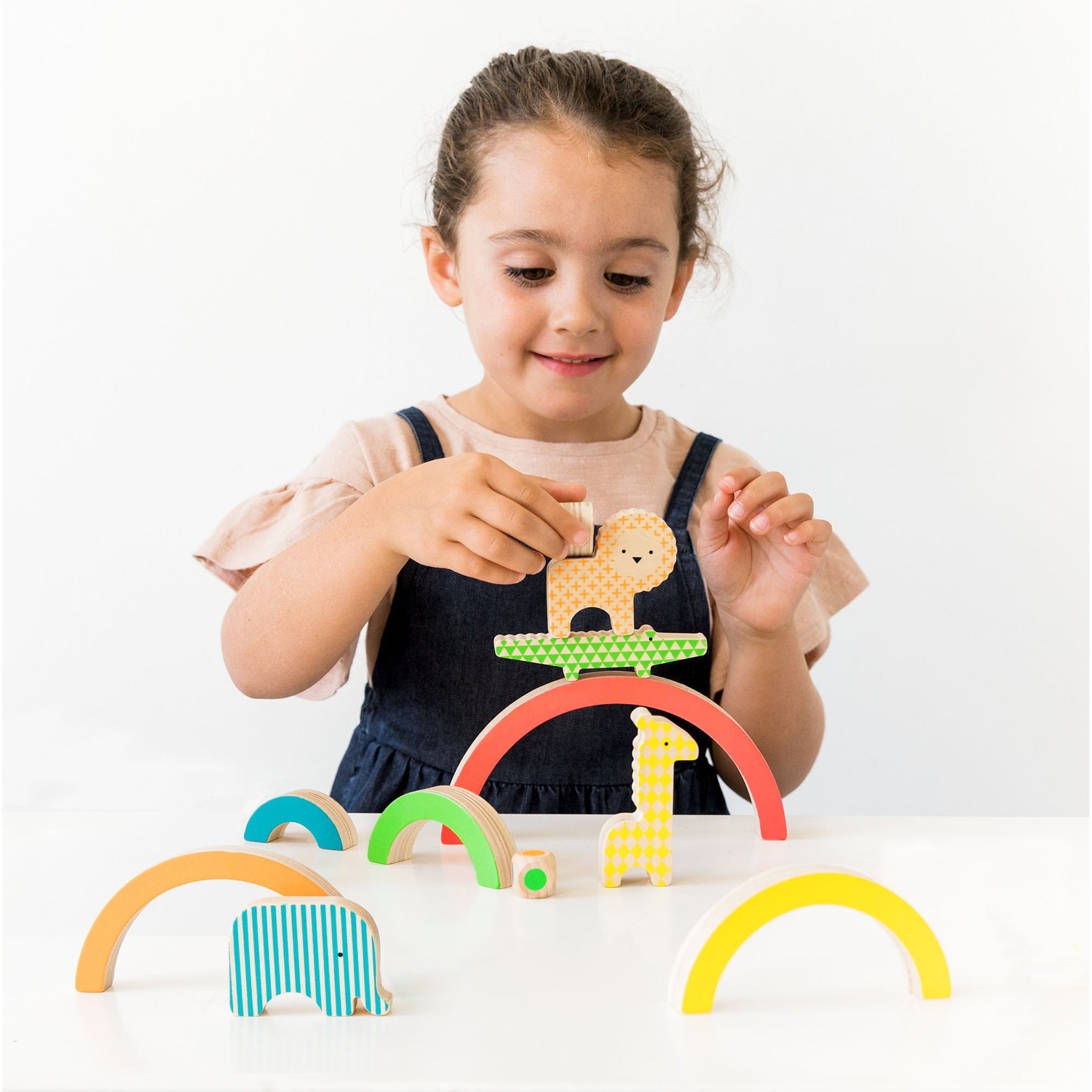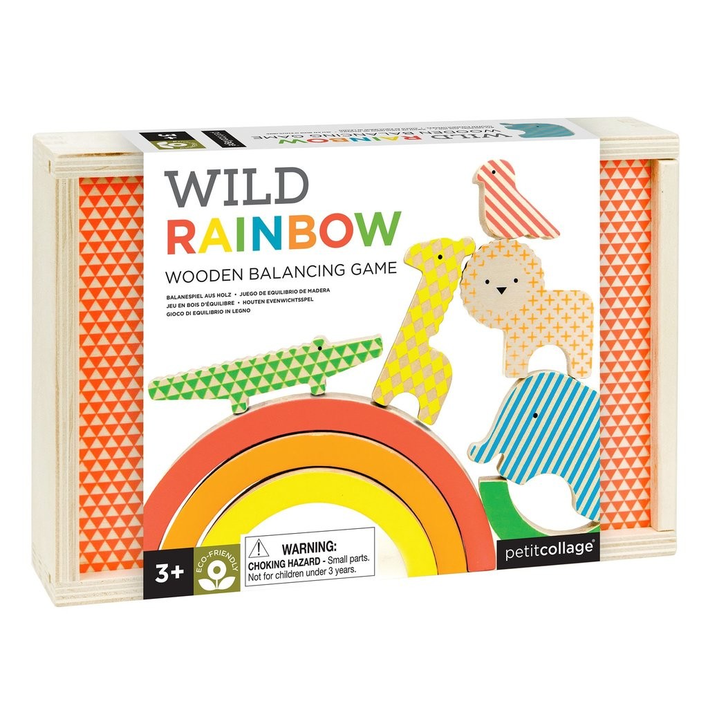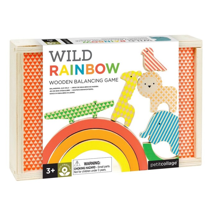 Unikátní výrazné neonové přírodní barvy dělají z této hry skvělou zábavu. Krásný design hračky rozzáří každý dětský pokoj. Děti pomocí balančních dílků a barevné kostky postaví zajímavou věž. Ať vám zvířátka nespadnou! Hlavní vlastnosti: obsahuje 5 zvířat, 5 dílů duhy, 1 vícebarevnou kostku a pokynybaleno v dřevěné krabici s potištěným horním víkem potištěné netoxickými neonovými inkousty splňuje všechny bezpečnostní normy