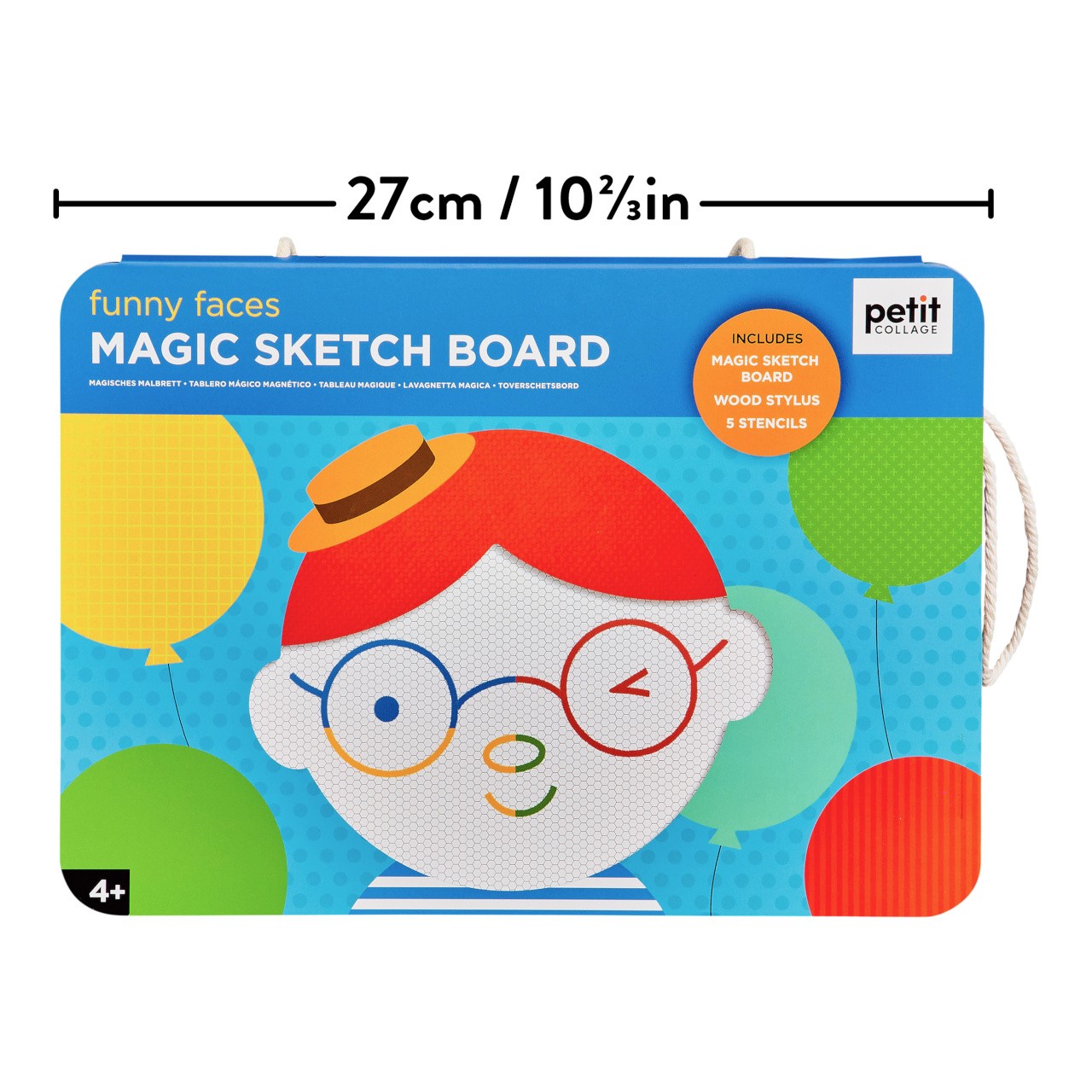 Rozprouděte představivost dětí s touto magnetickou kreslící tabulkou! Perfektní kreativní hračka domů i na cesty, má magickou tužku, která je připevněna k tabulce provázkem. Dále zde najdete mízítko a 5 ks předlohy pro kreslení. Když zrovna nekreslíte, můžete předlohy uložit do kapsy tabulky. Přiložte mizítko z druhé strany tabulky a rychle vymažte své umělecké dílo – můžete začít kreslit něco nového. Vyrobeno za použití recyklovaných materiálů, natištěno barvami na bázi zeleniny. Vhodné od 4 let. Neobsahuje BPA, ftaláty, olovo ani formaldehyd. Tolerance několika nemazatelných bodů. Hlavní vlastnosti Kreativní hračka, která trénuje kreativituTužka a mizítko5 ks předlohyObal vyroben z recyklovaných eko materiálůZdravotně nezávadnéVhodné od 4 let