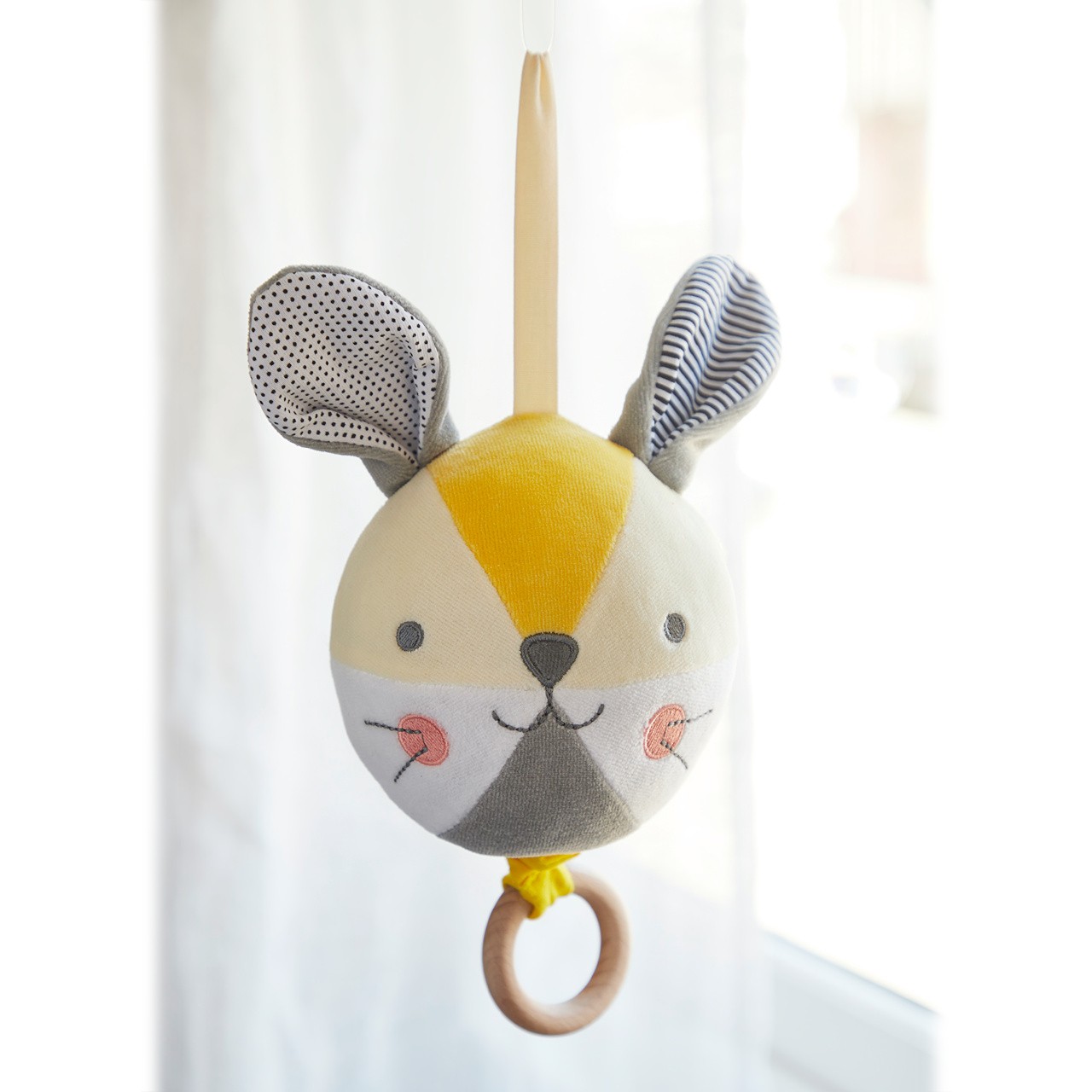 Poddajný a měkoučký míček v podobě králíčka spolehlivě ukolébá Vaše miminko. Po zatáhnutí za dřevěný kroužek přehraje 2 minuty uklidňující melodie písně „You Are My Sunshine“. Vyrobeno z organické bavlny.   Hlavní vlastnosti:přehrává melodiibezbateriový provoz