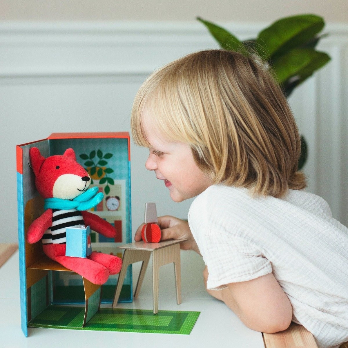 Uvnitř této knihovny potkáte lišáka Francese, který opravdu rád čte knihy na své oblíbené a pohodlné žluté židli. Rád by vám přečetl pohádku! Má měkkou plyšovou srst a milý úsměv. Jeho kniha má velikost tak akorát pro něj a je v ní opravdový text, takže tuto knihu můžete přečíst, pokud umíte anglicky. Hlavní vlastnosti Plyšový kamarád pro dítěSpolečník pro čtení před spaním3D nábytek, balení funguje také jako herní scénaSložte si sami Francesovu knihu podle návoduPerfektní pro představivou hru