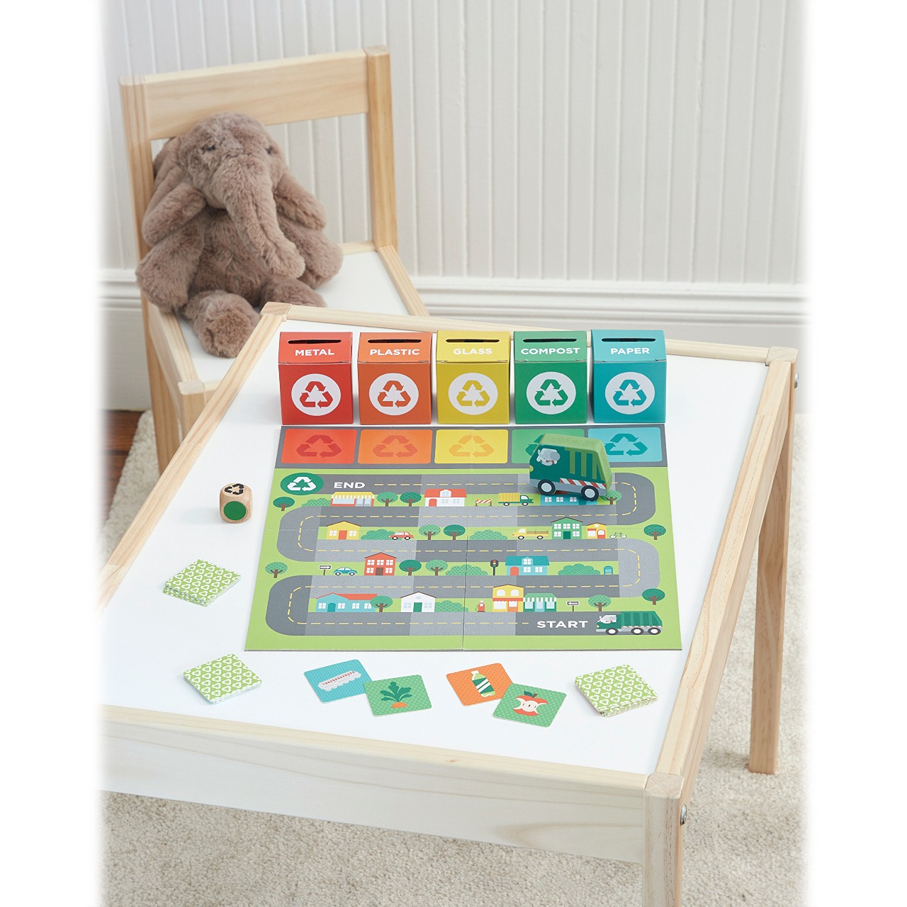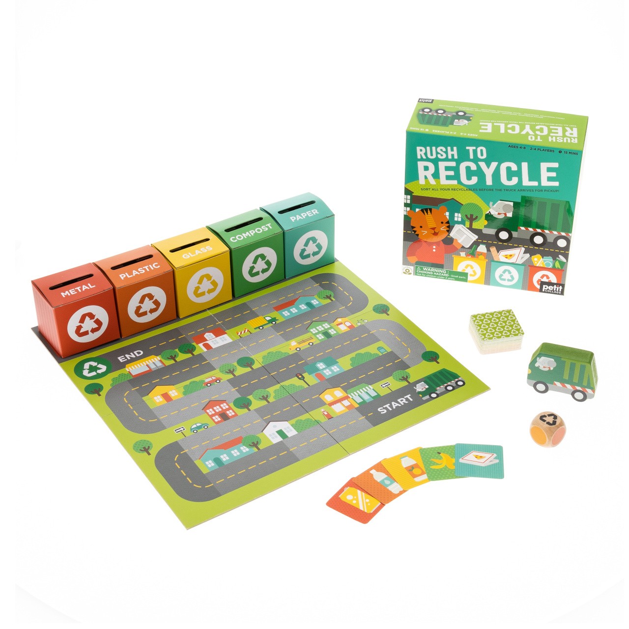Recyklace nikdy nebyla zábavná tak, jako s touto cenami ověnčenou hrou. Kov, sklo, nebo papír? Třiďte, než si pro ně přijedou! Hrajte spolu, nebo proti sobě a rozvíjejte ekologické cítění dětí. Hra je vhodná pro děti od 4 do 8 let a lze u ní strávit průměrně 15 minut. Je vyrobena z recyklovaných materiálů potištěných nezávadnými rostlinnými inkousty.   Hlavní vlastnosti:herní plán, 5 kontejnerů, kartičky, kostka a náklaďák   Ocenění hračky:National Parenting Product Award 2021PureWow's Happy Kid Award 2021Oppenheim Toy Portfolio Gold Seal Award 2021Made for Mums Bronze Award 2021