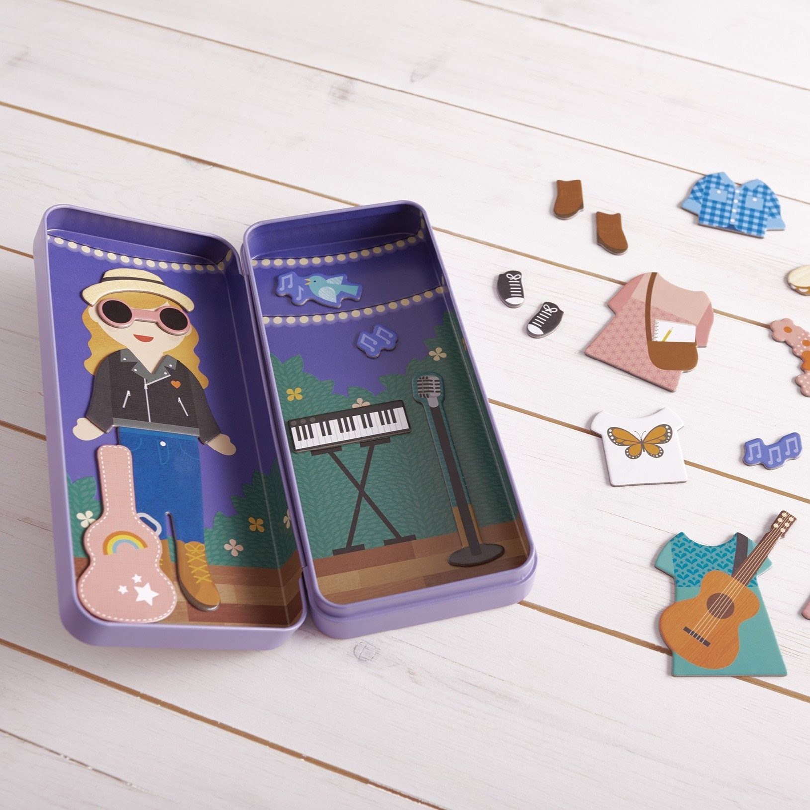 Poškozená kovová krabička. Nové zboží bez závad. Kreativní. Smělá. Vynalézavá. Použijte magnetické dílky k vytvoření vlastní muzikantky a koncertního pódia. Každý může mít velké sny, které jsou s dostatkem píle splnitelné. Tato sada: - inspiruje mladé umělce, aby si šli za svou vášní, - obsahuje obrázek mladé muzikantky s magnetickými doplňky, - obsahuje dvě koncertní scény. Hlavním posláním americké firmy Petitcollage je skloubení moderního designu, ekologie a udržitelnosti. Originální výrobky jsou navrhované v Kalifornii a v současné době jsou prodávány po celém světě. Výrobky jsou vyrobeny z recyklovaných materiálů, bambusu nebo kvalitního certifikovaného dřeva. Veškeré používané barvy při výrobě jsou na rostlinné bázi a šetrné k životnímu prostředí. Výrobky jsou navrženy tak, aby rostly s Vašimi dětmi a vytvářely také svým designem krásný a útulný domov.