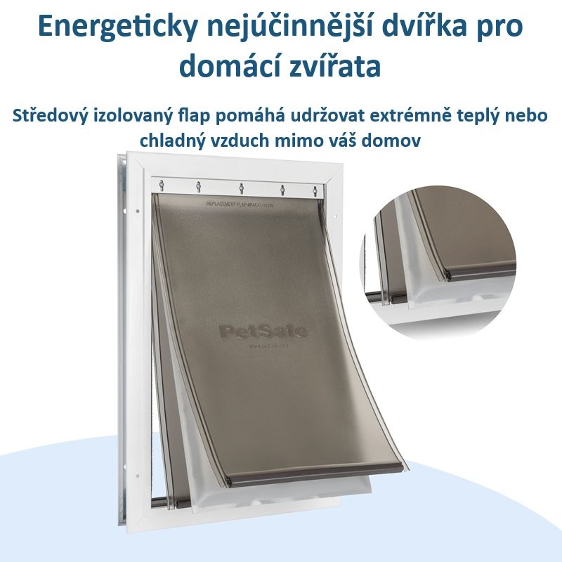 • 3 flapový systém zajišťuje až 3,5 krát vyšší energetickou účinnost než standardní dvířka pro psy