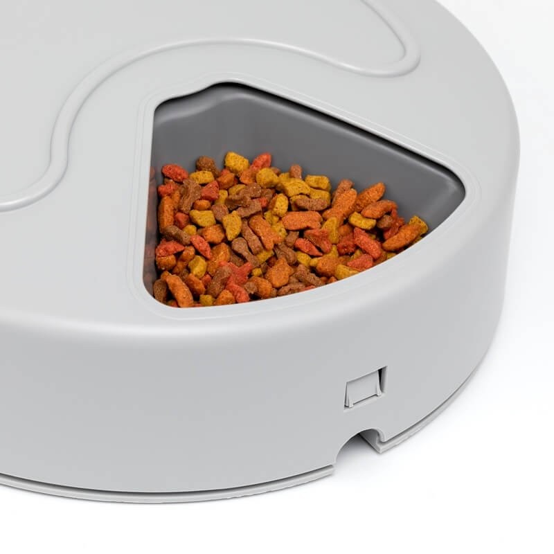 • Každá přihrádka ve vyjímatelném zásobníku pojme až 236 ml suchého nebo polovlhkého krmiva.