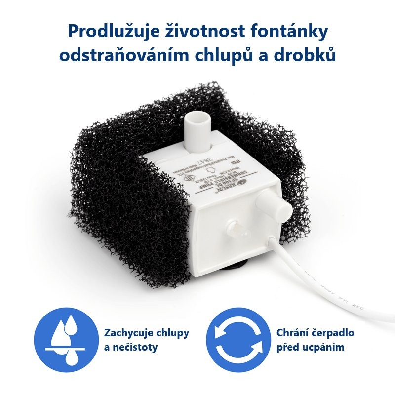 Pěnové filtry zachycují větší nečistoty, čímž chrání čerpadlo fontány, prodlužují jeho životnost a udržují vodu čerstvou a čistou. Celý popis