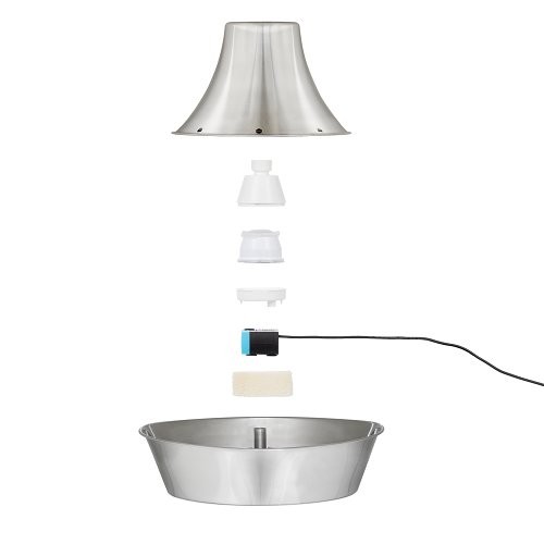 Pomozte svému mazlíčkovi zůstat šťastným, zdravým a hydratovaným díky fontánce PetSafe® Seaside, která je vyrobená z nerezové oceli. Fontánka poskytne vašemu mazlíčkovi čerstvou filtrovanou vodu. Kočky a psy přitahuje tekoucí voda, která je povzbuzuje k častějšímu pití, a tím podporuje jejich celkové zdraví. Tato fontánka pro domácí zvířata pojme 1,8 litru vody a má tak ideální velikost pro kočku nebo malého psa. Tichý chod fontánky zajišťuje, že voda nad věží jen jemně probublává (na rozdíl od volně padajícího proudu), což umožní i plachým nebo bázlivým kočkám cítit se pohodlně a rychle se s ní seznámit. Váš miláček si také může vybrat, jestli bude pít vodu z věže nebo misky. Fontána využívá čerpadlo, uhlíkový a pěnový filtr, které spolupracují na odstranění chlupů domácích zvířat, slin a pachutí z vody. Voda k pití tak zůstane vždy čistá. Nerezová fontána je vyrobena z vysoce kvalitních materiálů, které jsou hygienické a odolné vůči poškrábání a rzi. Když nastane čas fontánku vyčistit, umístěte nerezovou věž a misku do horní police vaší myčky nádobí. Čerpadlo vyčistěte ručně.
