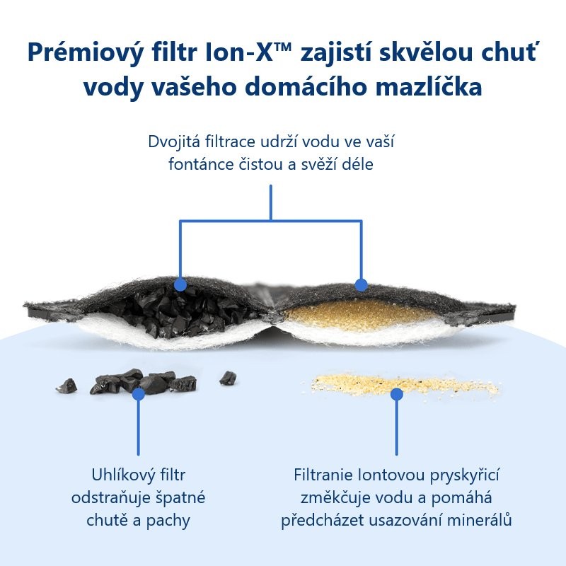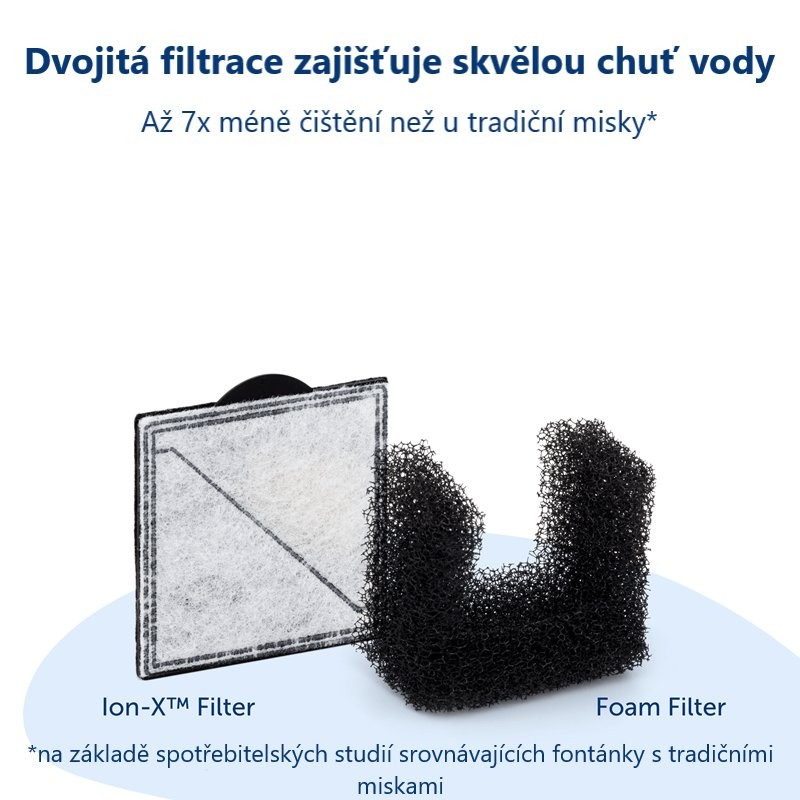 Fontánky pro domácí zvířata filtrují a nepřetržitě cirkulují vodu, aby se zabránilo růstu počtu bakterií a udržely vodu mnohem čistší a svěžejší chuti než stojící voda z misky. Pití dostatečného množství vody je důležité pro celkové zdraví Vašeho domácího mazlíčka. Váš mazlíček potřebuje každý den 70 ml vody na 1 kg tělesné hmotnosti.