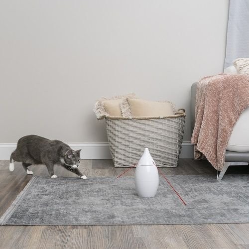 Dvojnásobné množství laserových světel, dvojnásobná zábava! Tato poutavá hračka je ideální pro domácnosti s více kočkami. Červené lasery rotují v úhlu 360 stupňů a po místnosti se pohybují nepředvídatelnými směry, aby se Vaše kočka pokusila uhodnout jejich příští pohyb. Hračka má tichý motorek, a tak nebude nijak narušovat pohodu domova. Pevná základna zabraňuje převrácení. Lasery jsou testovány, aby splňovaly všechny bezpečnostní a kvalitativní normy ve všech zemích. Hračka se automaticky vypne po 15 minutách hry, aby se zabránilo nadměrné stimulaci koček a prodloužila se životnost baterie.