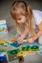 Děti trénují koordinaci ruka-oko, jemnou motoriku a dozví se více o zvířatech. Pak si spolu s dětmi si o životě zvířátek vyprávějte. Úkolem děti je najít zvířátku jejich správný "domeček", kde žije. Co je uvnitř?Sada obsahuje 8 pružných plastových destiček se suchým zipem a 16 samostatných dílků, které umístíte na destičky pomocí suchého zipu. Díky této vychytávce jednotlivé díly jen tak nespadnou a budou držet na správném místě. Všechny části jsou vyrobené z odolného, ale tenkého plastu se speciální povrchovou úpravou, která je dětem příjemná na dotek. Jak hrát? Berte jednotlivé dílky jeden po druhém a povídejte dětem co na nich je.Potom vezměte destičku s obrysy předmětů a vybídněte dítě, aby našlo správný předmět pro každý obrys a připevnilo ho pomocí suchého zipu na správné místo. Hlavní vlastnosti: zlepšuje motorické schopnosti trénuje vyjadřování a mluvenou řeč rozvíjí myšlení a paměť upevňuje udržení pozornosti
