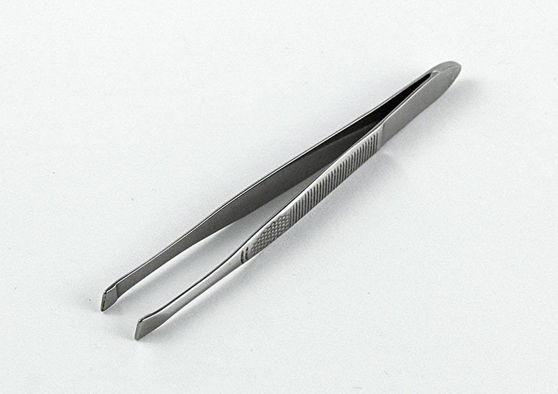 Pinzeta zkosená epilační má jemné zbroušené plošky, velikost 9 cm.