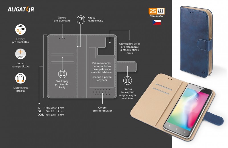Pro maximální ochranu Vašeho mobilního telefonu doporučujeme používat toto pouzdro v kombinaci s řadou kvalitních univerzálních tvrzených skel ALIGATOR GLASS.