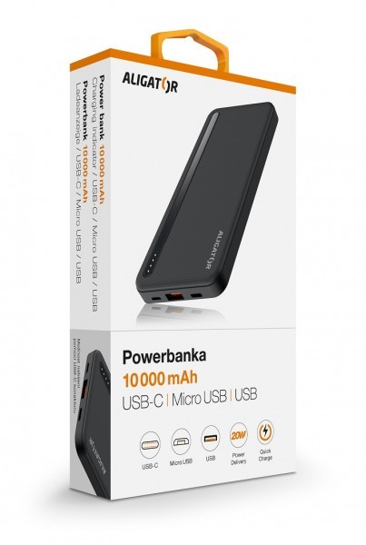 Úvod Mobily, chytré hodinky, tablety Příslušenství pro mobilní telefony Powerbanky Powerbanka ALIGATOR PBAL1050, Power Delivery 20W, QC 3.0 18W, 10 000mAh