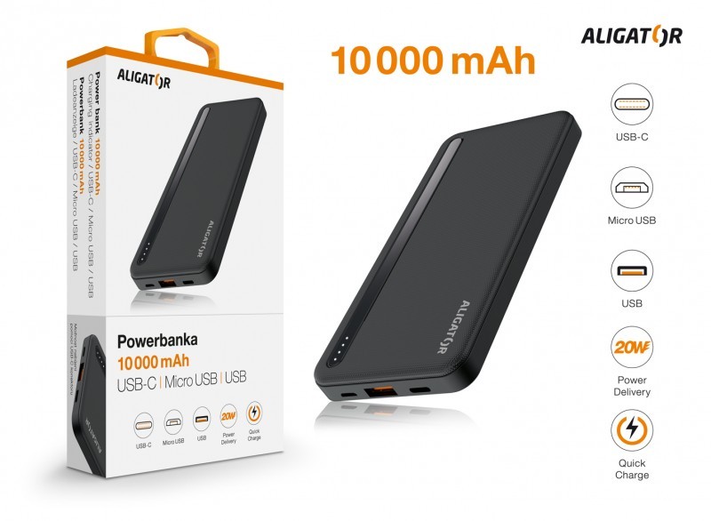 Powerbanka ALIGATOR PBAL1050, Power Delivery 20W, 10 000mAh