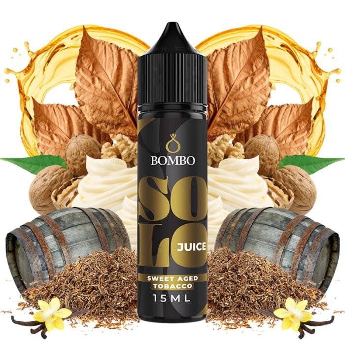 Úvod E-Cigarety Vlastní výroba (DIY) Příchutě Shake and Vape Příchuť Bombo Solo Juice S&V 15ml Sweet Aged Tobacco (Nasládlá tabáková směs)