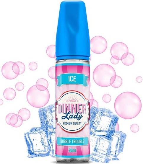 Bubble Trouble Ice přináší sladké žvýkačkové mraky s chladivým dotekem... Společnost Dinner Lady je známá svými prémiovými liquidy, které si oblíbili vapeři po celém světě. Nyní tento světově uznávaný výrobce z Velké Británie představuje i prémiové příchutě ve stylu Shake and Vape. Balení obsahuje 20ml příchutě v 60ml Chubby lahvičce. Uživatel tak pouze přidá bázi do lahvičky, zatřese s ní a má hotový e-liquid.... Jedná se o koncentrát, který se kape do báze. ...nejedná se o hotový liquid. Celý popis