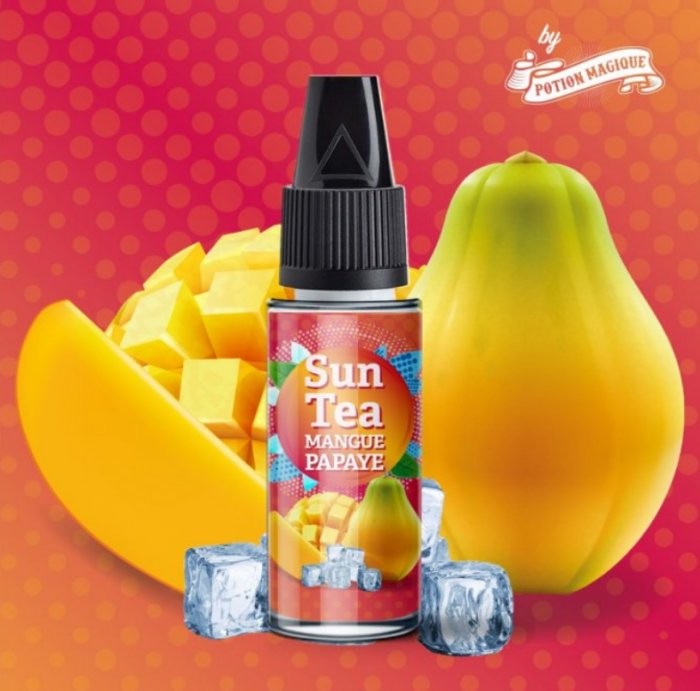 Ledový papájový čaj se zralým mangem... Sun Tea pochází od předního francouzského výrobce příchutí Potion Magique. Výroba probíhá za nejpřísnějších hygienických standardů ve farmaceutické laboratoři. Jedná se o koncentrát, který se kape do báze. Příchuť může být použita pouze jako aroma do bází....nejedná se o hotový liquid. Celý popis