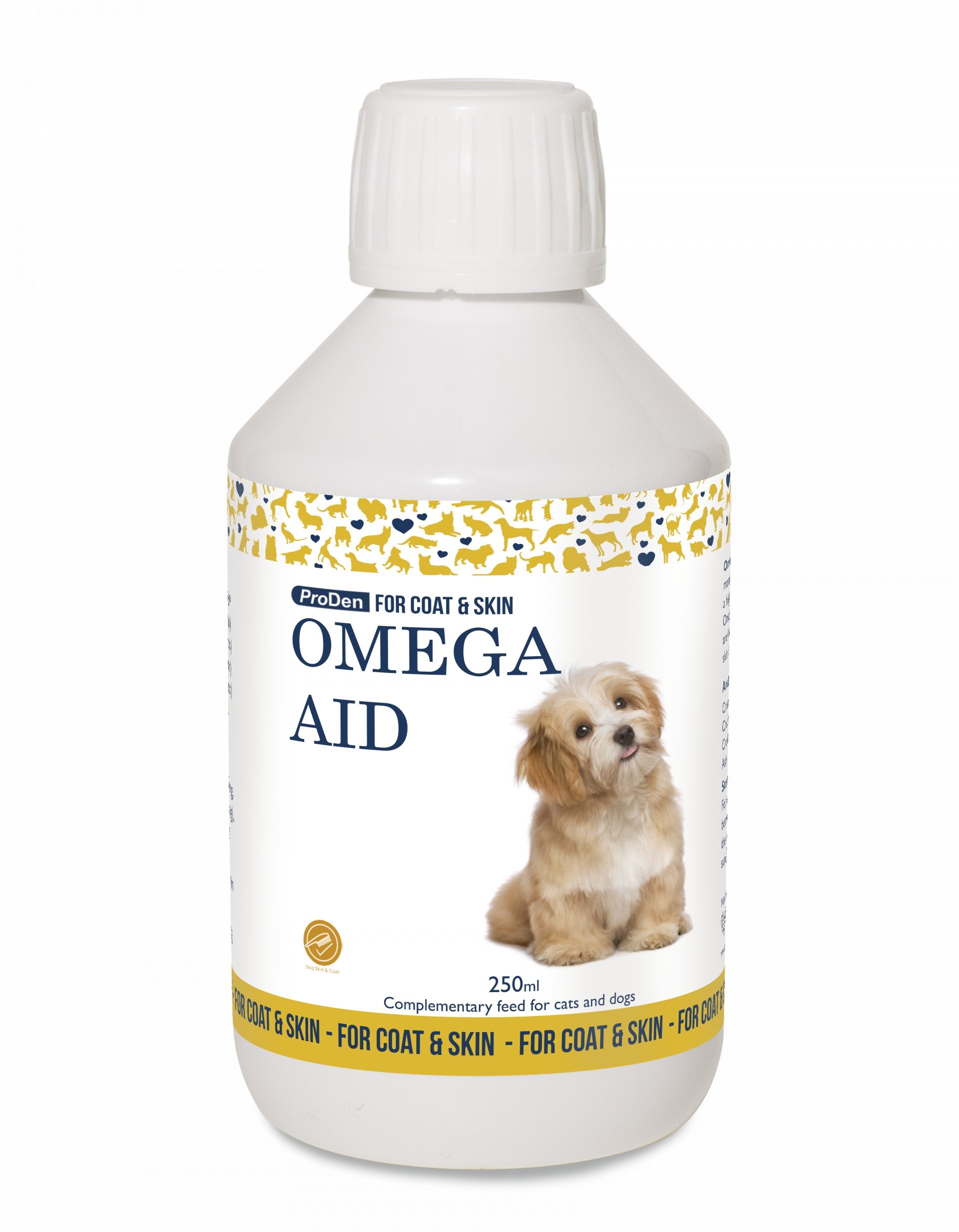OmegaAid je doplněk krmiva, který napomáhá podpořit zdravou kůži a srst u koček a psů. Obsahuje vysoké množství Omega 3.