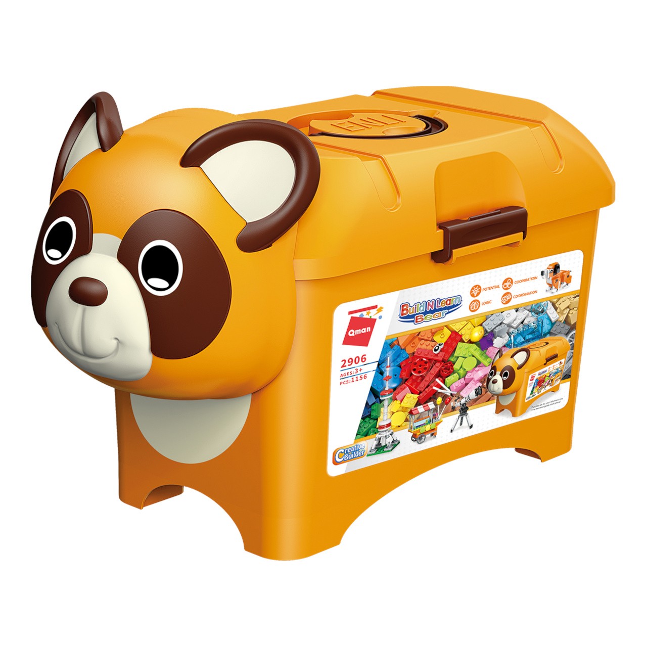 Úložný box se díky roztomilé zvířecí masce promění v zářivou ozdobu dětského pokoje. Je plný pestrobarevných stavebních kostek rozmanitých tvarů. Díky několika úchytkám a madlu je snadno přenosný, jeho víko lze i zajistit, aby se obsah při transportu nevysypal. Vysoce variabilní stavebnice Qman z pestrobarevných plastových kostiček lze kombinovat s podobnými stavebnicemi mnoha dalších významných výrobců. Vyrobeno z kvalitního, nezávadného a odolného, ABS plastu. Hlavní vlastnosti:975 dílkůpraktické i okrasné baleníkompatibilní se stavebnicemi dalších výrobců
