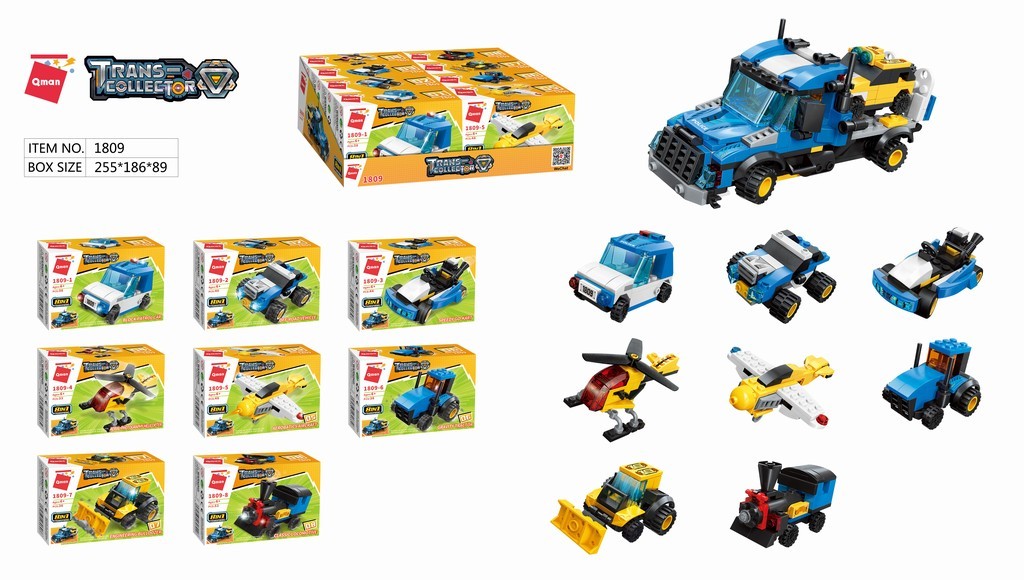 Kombinujte a pozvedejte stavbu i hru na vyšší úroveň! Sada ministavebnic dopravních prostředků, jejichž kombinací vznikne možnost sestavit velký ucelený model odtahového vozu. Vysoce variabilní stavebnice Qman z pestrobarevných plastových kostiček lze kombinovat s podobnými stavebnicemi mnoha dalších významných výrobců. Vyrobeno z kvalitního, nezávadného a odolného, ABS plastu. Baleno po jednotlivých stavebnicích, v pestře potištěných papírových krabičkách. Hlavní vlastnosti:329 dílků celkem, 33–52 dílků jednotlivě2 úrovně složitosti, kombinováním sady lze sestavit velký modelkompatibilní se stavebnicemi dalších výrobců Tato sada obsahuje: Auto Block Patrol 1809-1 (1 ks, 38 dílků) Off-road 1809-2 (1 ks, 40 dílků) Vůz Speedy 1809-3 (1 ks, 44 dílků) Vrtulník 1809-4 (1 ks, 33 dílků) Letoun 1809-5 (1 ks, 48 dílků) Traktor 1809-6 (1 ks, 38 dílků) Bagr 1809-7 (1 ks, 36 dílků) Vláček 1809-8 (1 ks, 52 dílků)