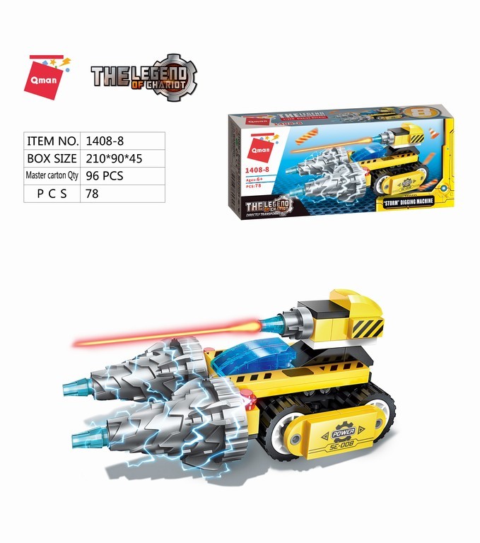 Kombinujte a pozvedejte stavbu i hru na vyšší úroveň! Sada ministavebnic stavební techniky, jejichž kombinací vznikne možnost sestavit velký ucelený model víceúčelového stroje. Vysoce variabilní stavebnice Qman z pestrobarevných plastových kostiček lze kombinovat s podobnými stavebnicemi mnoha dalších významných výrobců. Vyrobeno z kvalitního, nezávadného a odolného, ABS plastu. Baleno po jednotlivých stavebnicích, v pestře potištěných papírových krabičkách.   Hlavní vlastnosti:662 dílků celkem, 71–96 dílků jednotlivě2 úrovně složitosti, kombinováním sady lze sestavit velký modelkompatibilní se stavebnicemi dalších výrobců   Tato sada obsahuje: Náklaďák Spanker 1408-1 (1 ks, 76 dílků) Jeřáb Hercules 1408-2 (1 ks, 79 dílků) Válec Thunder 1408-3 (1 ks, 73 dílků) Bagr Talon 1408-4 (1 ks, 77 dílků) Vrtulník Dragon 1408-5 (1 ks, 96 dílků) Buldozér Blade 1408-6 (1 ks, 72 dílků) Robot Ninja 1408-7 (1 ks, 71 dílků) Kopací stroj Storm 1408-8 (1 ks, 78 dílků)