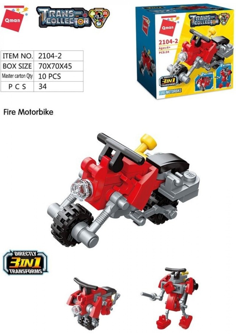 Stavějte a přestavujte! Ministavebnice nabízí trojici možností sestavení. Zkusíte přijít s vlastní kombinací? Vysoce variabilní stavebnice Qman z pestrobarevných plastových kostiček lze kombinovat s podobnými stavebnicemi mnoha dalších významných výrobců. Vyrobeno z kvalitního, nezávadného a odolného ABS plastu. Baleno v pestře potištěné papírové krabičce. Hlavní vlastnosti:34 dílků3 varianty sestaveníkompatibilní se stavebnicemi dalších výrobců