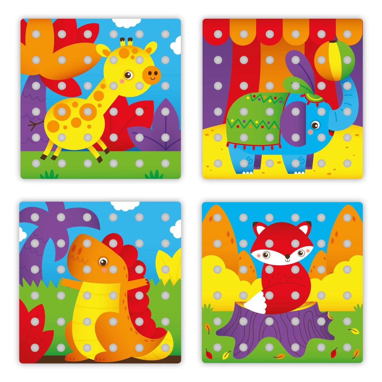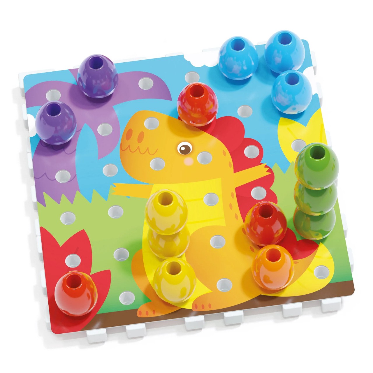 Dokážeš vložit velké barevné kolíčky na správná místa? Mozaiková sada Jumbo Peggy umožňuje vstup do světa kolíčkových her dětem již od 2 roku. Lze tvořit podle předlohy nebo můžete obrázky odložit stranou a podložka s kolíčky se rázem promění v originální stavebnici (souprava tak vlastně přináší dvě hry). V malých rukách se velké kolíčky skvěle drží. Obsah balení:9 vzájemně propojitelných perforovaných podložek 36 velkých kolíčků (průměr 33 mm) v 6 barvách4 oboustranné karty s předlohami Hlavní vlastnosti: rozvíjí koordinaci, jemné motorické dovednosti, tvořivost a plánovánílze hrát na 2 způsobypro děti od 2 let