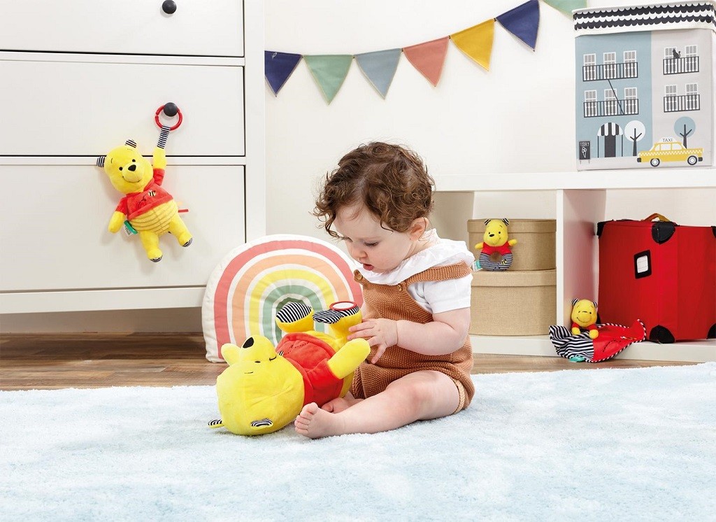 Všichni milují Medvídka Pú od Disneyho a tato plyšová hračka je dokonalým společníkem, který zabaví ty nejmenší. Medvídek má jasně červený svetřík s včelou medonosnou a stimulující černobílé pruhované uši a tlapky. Na jedné tlapce je malé zrcátko. Hračka byla vytvořena pro podporu raných vývojových dovedností dítěte. Hlavní vlastnosti: vhodné od narozeníroztomilá plyšová hračka v sytých barváchideální jako dárek pro miminkostimuluje smysly