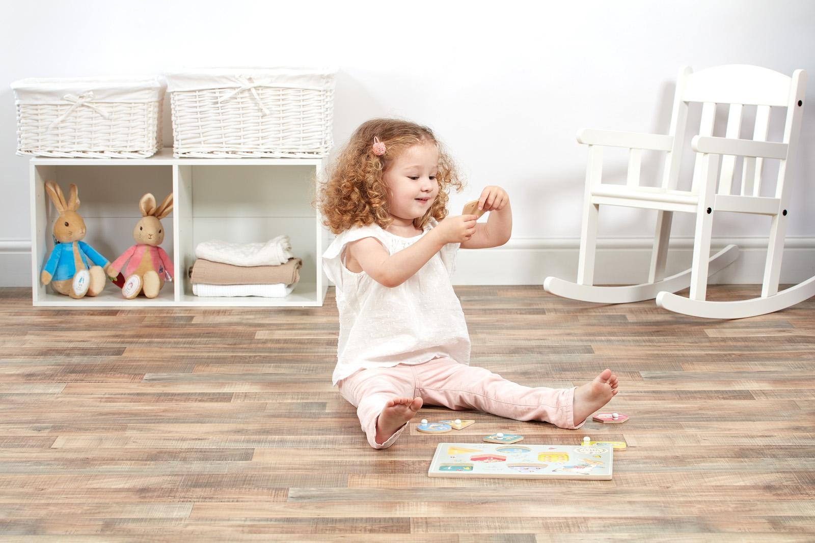 Děti si užijí zábavu a také se naučí něco nového. S tímto puzzle s králíčkem Petrem se děti naučí rozeznávat barvy, tvary a čísla. Hračka je vyrobena z kvalitního dřeva, má krásné ilustrace z knížky Králíček Petr od Beatrix Potter. Puzzle u dětí rozvíjí koordinaci ruka-oko a kognitivní funkce. Vhodné pro děti od 18 měsíců věku.